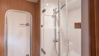 Les cabines d'hôtes comprennent une suite principale avec un lit queen-size et une salle de bains privative, 4 cabines avec un lit queen-size et une salle de bains privative et 2 cabines avec un lit simple.