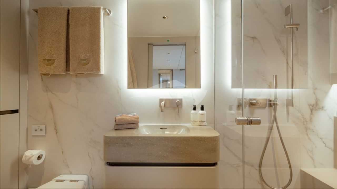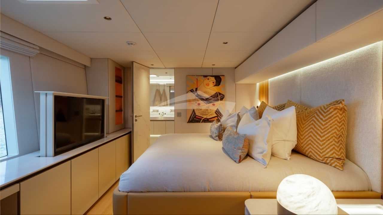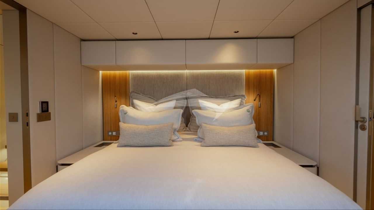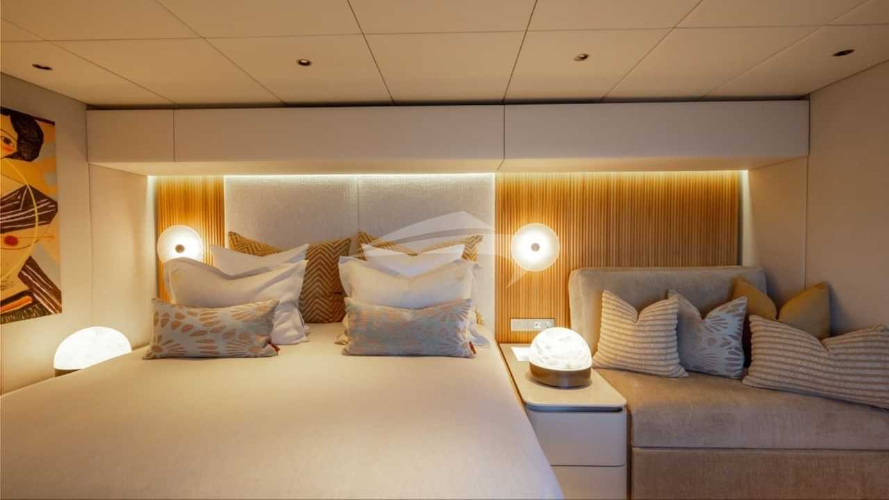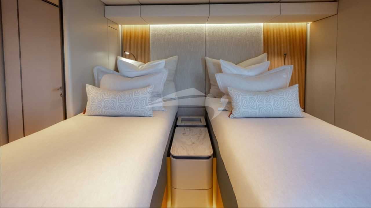 Les cabines d'hôtes comprennent une suite principale avec un lit king-size et une salle de bains privative, une suite VIP avec un lit double et une salle de bains privative et 2 cabines avec un lit double et une salle de bains privative.
