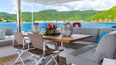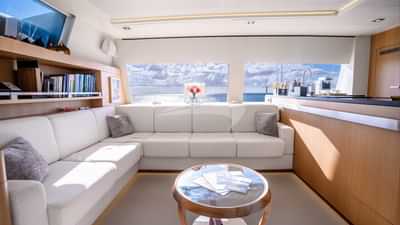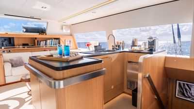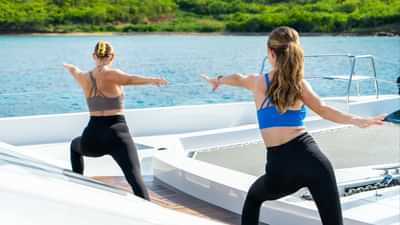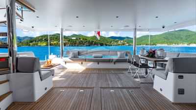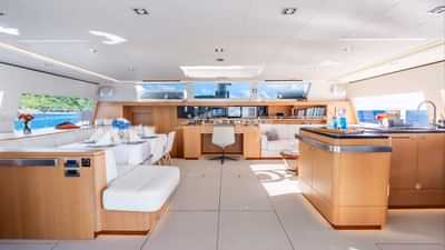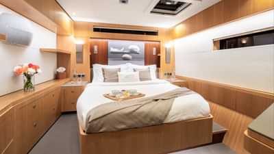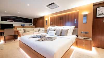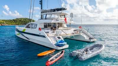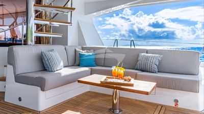 Les équipements à bord pour les clients du charter incluent la climatisation, des sièges sur le pont avant, un accès Internet par satellite Starlink, des coussins solaires, une télévision dans toutes les cabines et une connexion Wi-Fi.