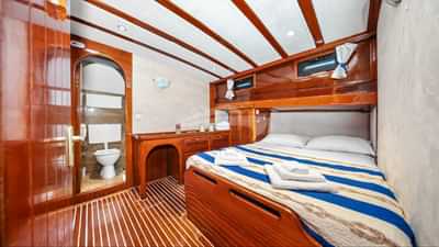 Les cabines d'hôtes comprennent une cabine avec un lit king size, une cabine avec un lit double, une cabine avec un lit double, une cabine avec un lit double et une cabine avec un lit double.