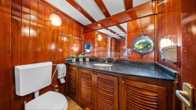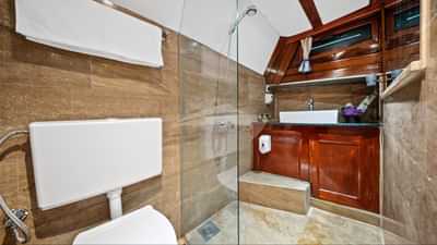 ELEGANZA peut accueillir 10 invités dormant à bord dans 5 cabines.