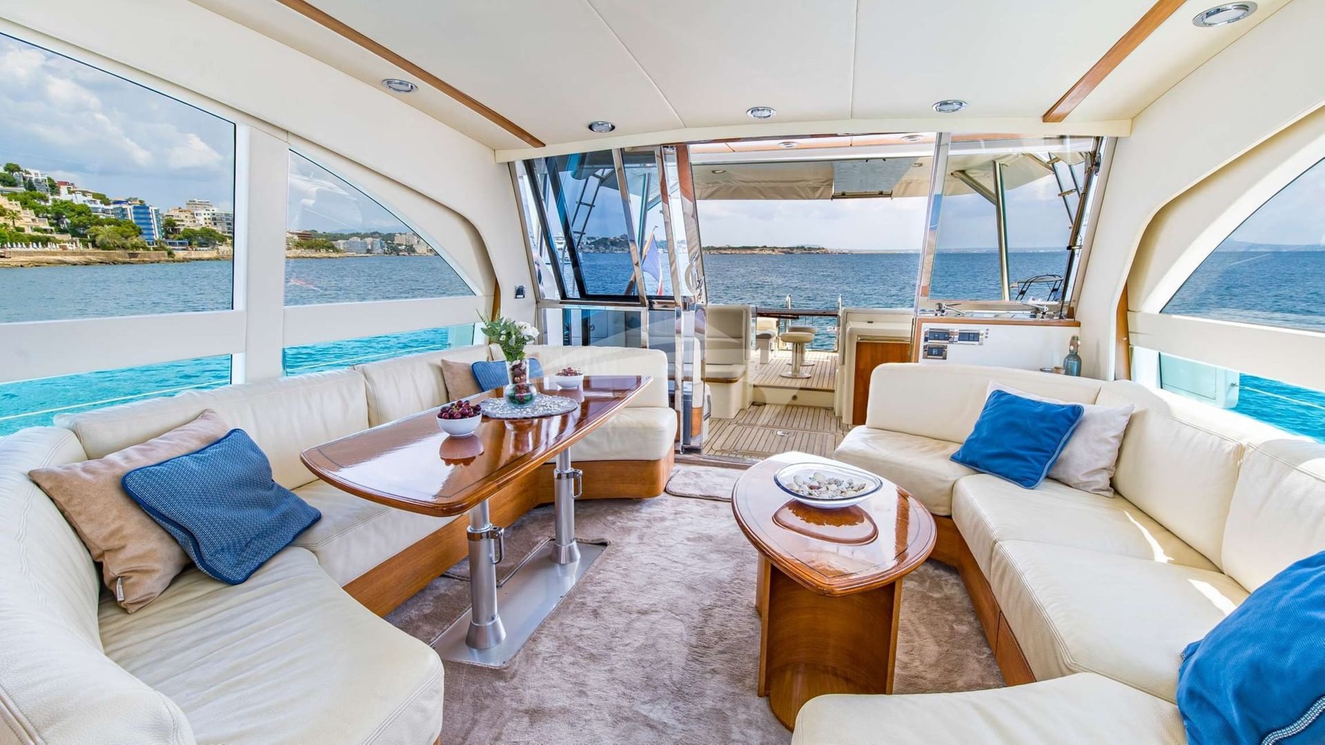 Les équipements à bord pour les clients de la location incluent la climatisation, un barbecue, une douche extérieure, un système audio intérieur, une station d'accueil pour iPod et un salon de télévision.