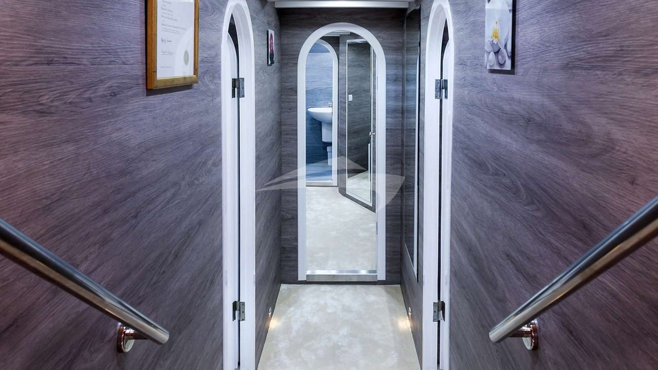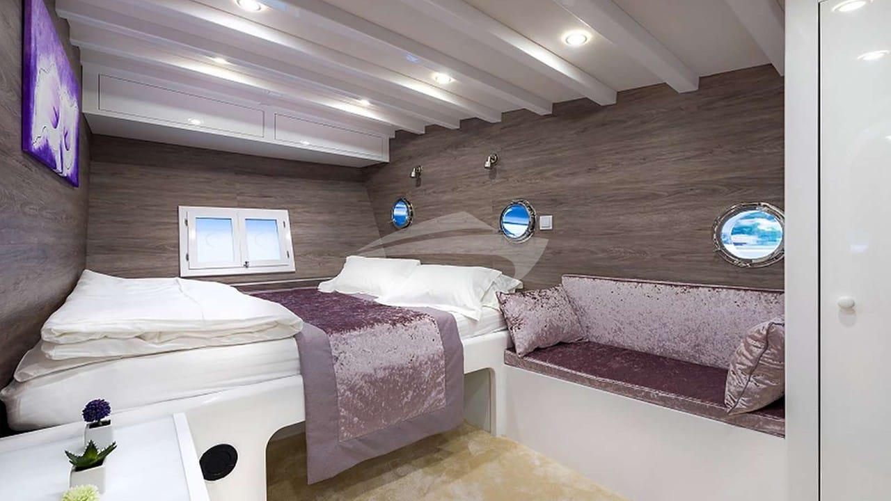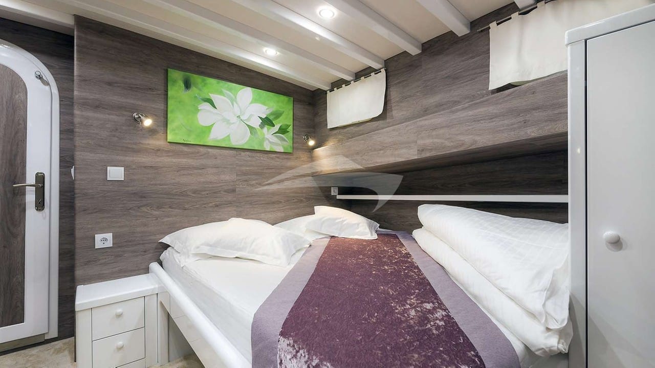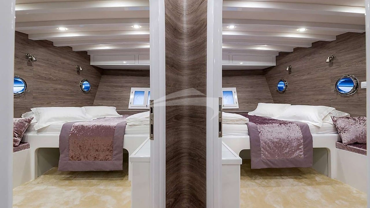 L'ANDEO peut accueillir 10 personnes dans 5 cabines comprenant une suite principale avec un lit double et une salle de bains privative et 4 cabines avec un lit double et une salle de bains privative.
