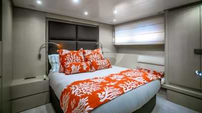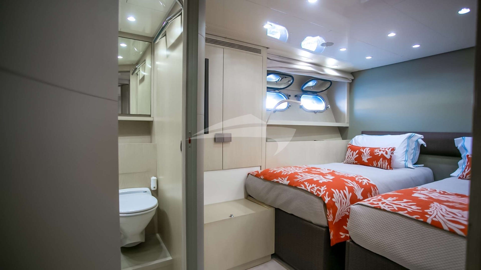 Les cabines comprennent une suite principale avec un lit king-size et une salle de bains privative, 2 cabines avec un lit double et une salle de bains privative, ainsi qu'une cabine avec un lit double et une salle de bains privative.
