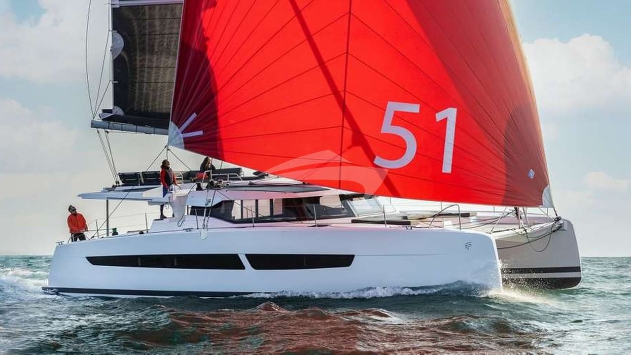 Le voilier de luxe AURA 51 a été construit par Fountaine Pajot et livré à son propriétaire en 2025.