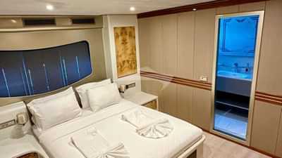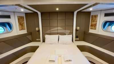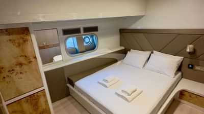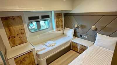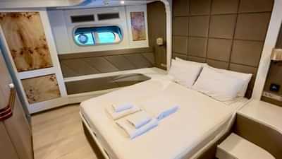Les cabines d'hôtes comprennent une suite principale avec un lit double et une salle de bains privative, ainsi que 4 cabines avec un lit double et une salle de bains privative.