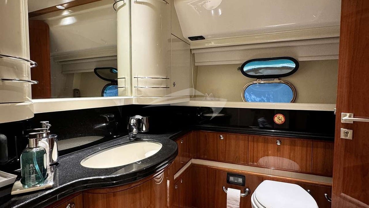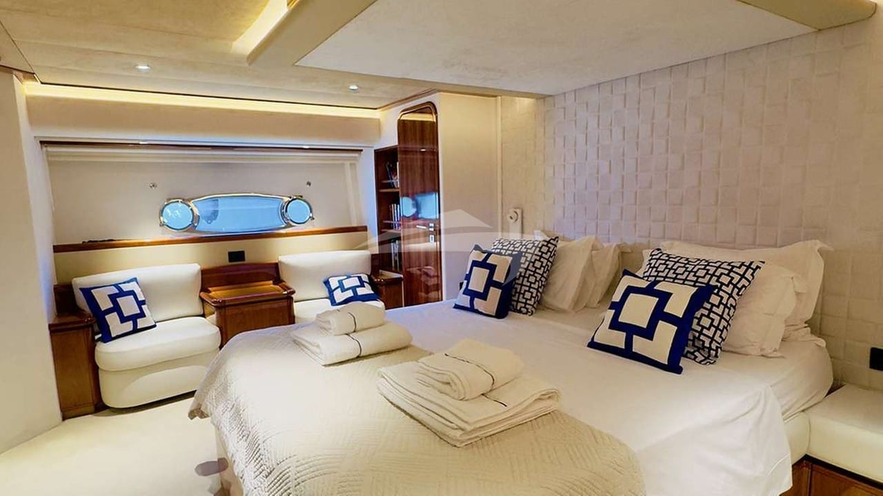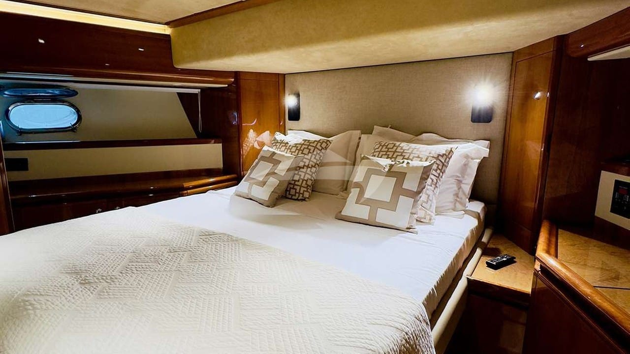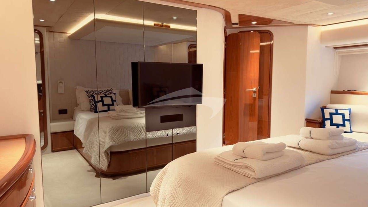 Les cabines d'hôtes comprennent une suite principale avec un lit double, une cabine avec un lit double et un lit Pullman et 2 cabines avec un lit double.
