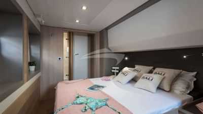 Les cabines d'hôtes comprennent une suite principale avec un lit king size et une salle de bains privative, 3 cabines avec un lit double et une salle de bains privative et une cabine avec lits jumeaux.