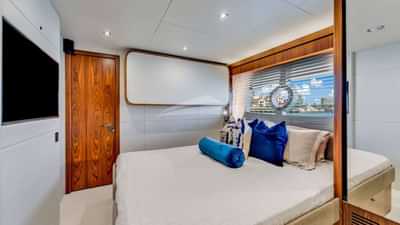 Les cabines comprennent une suite principale avec un lit king-size et une salle de bains privative, 2 cabines avec un lit queen-size et une salle de bains privative, ainsi qu'une cabine avec un lit double et une salle de bains privative.