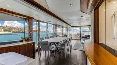 Les équipements à bord pour les passagers du charter incluent la climatisation et des stabilisateurs à l'ancre.