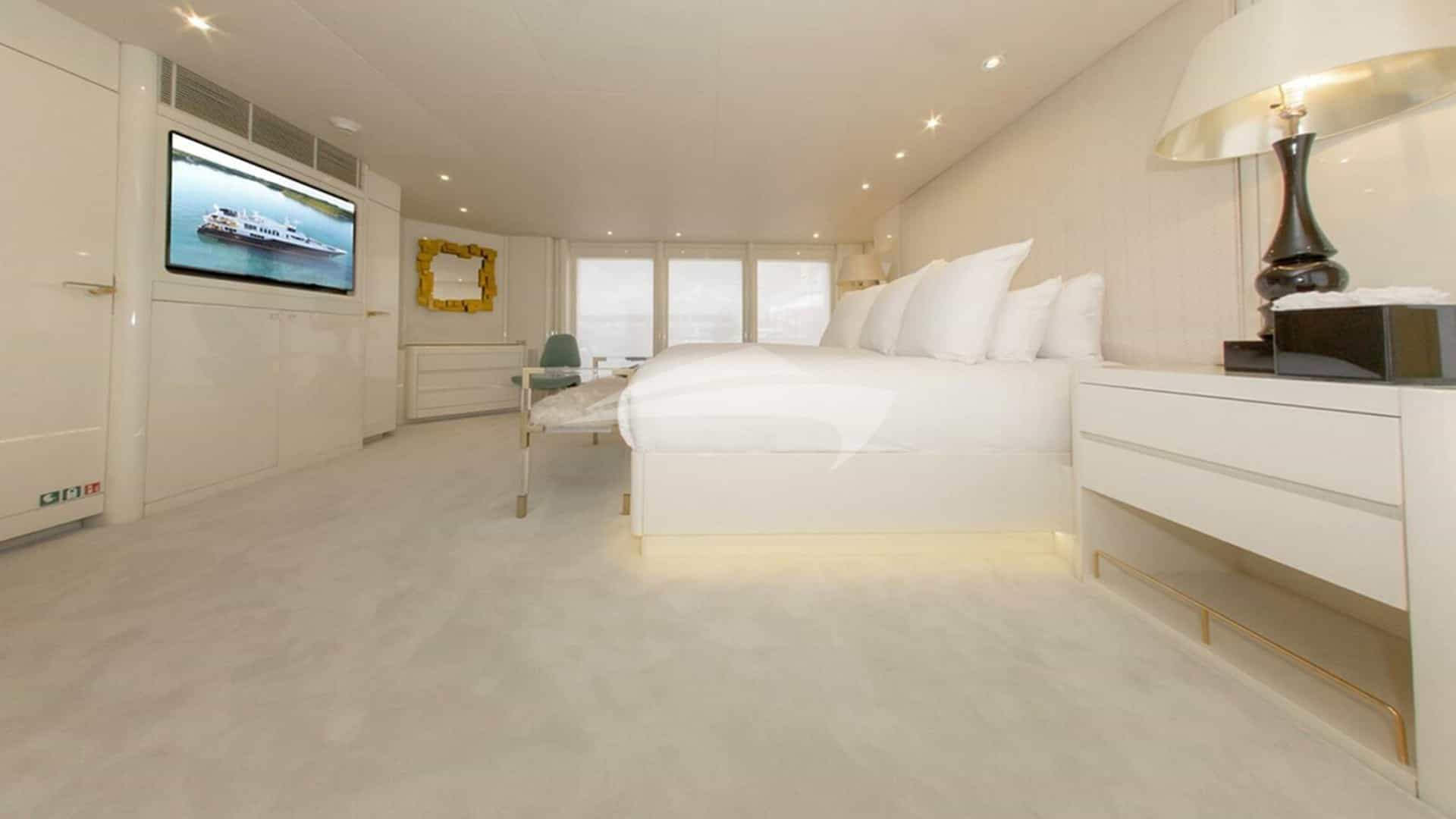 Les cabines d'hôtes comprennent une suite principale avec un lit king size et une salle de bains privative, 2 cabines avec un lit king size et une salle de bains privative et 3 cabines avec un lit queen-size et une salle de bains privative.