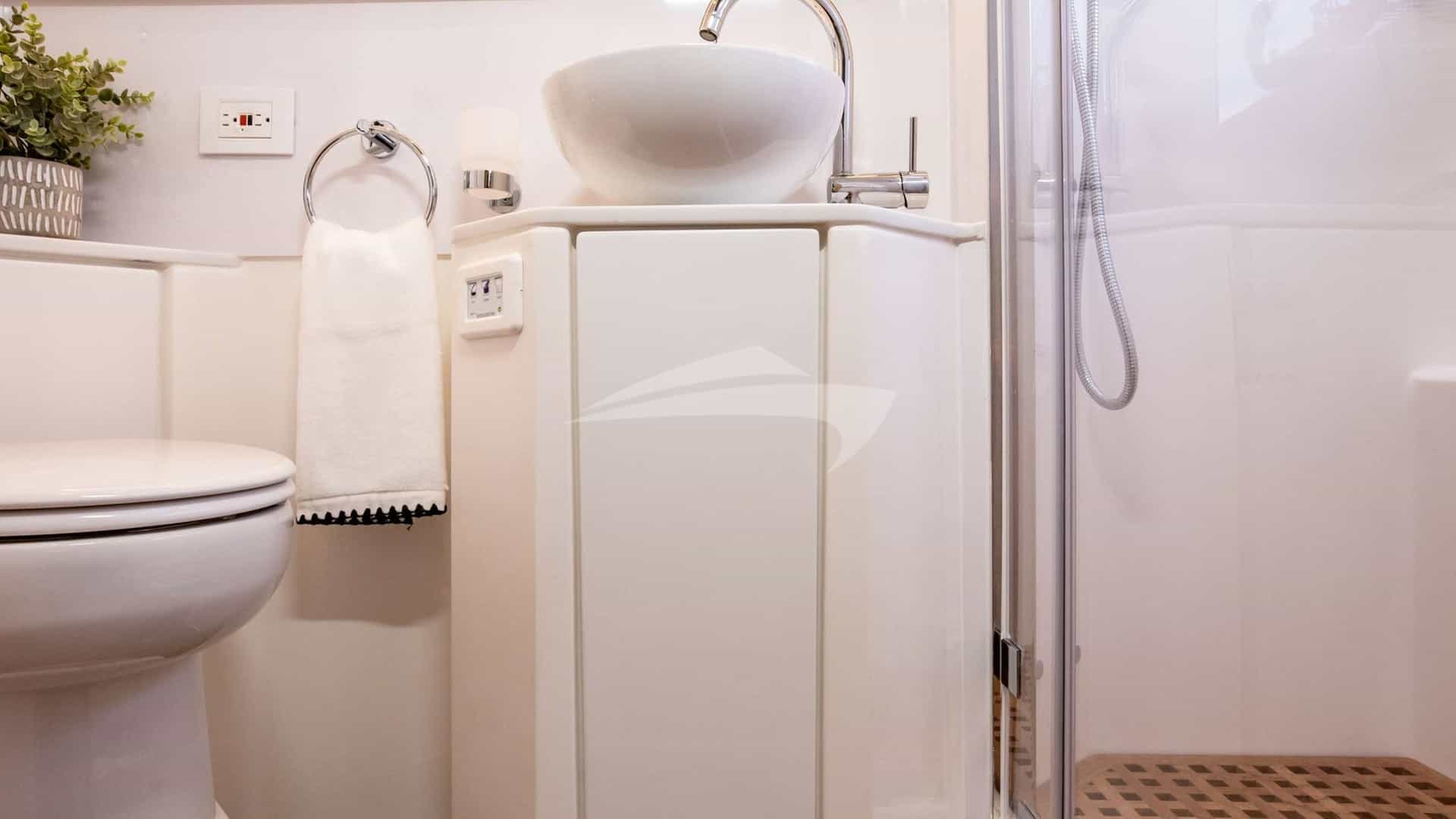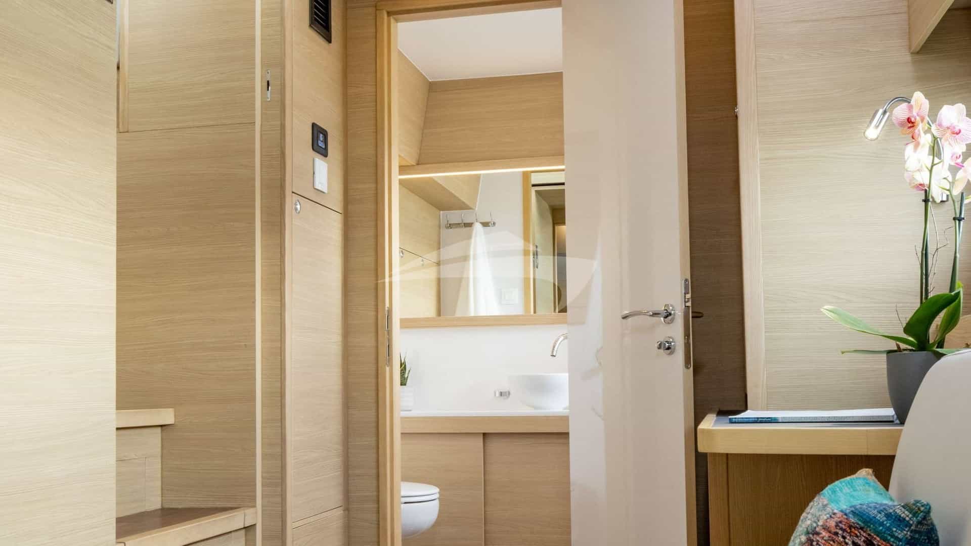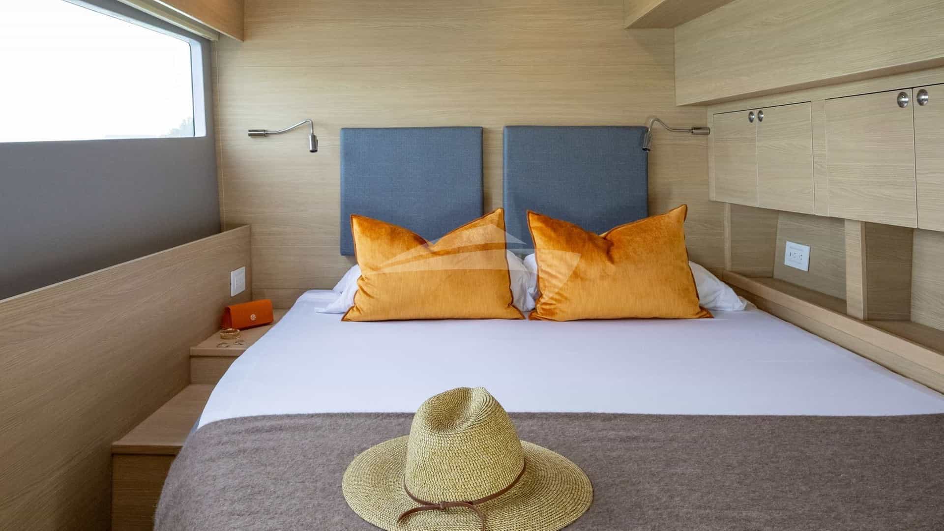 Les cabines d'hôtes comprennent une suite principale avec un lit king-size et une salle de bains privative, ainsi que 3 cabines avec un lit queen-size et une salle de bains privative.