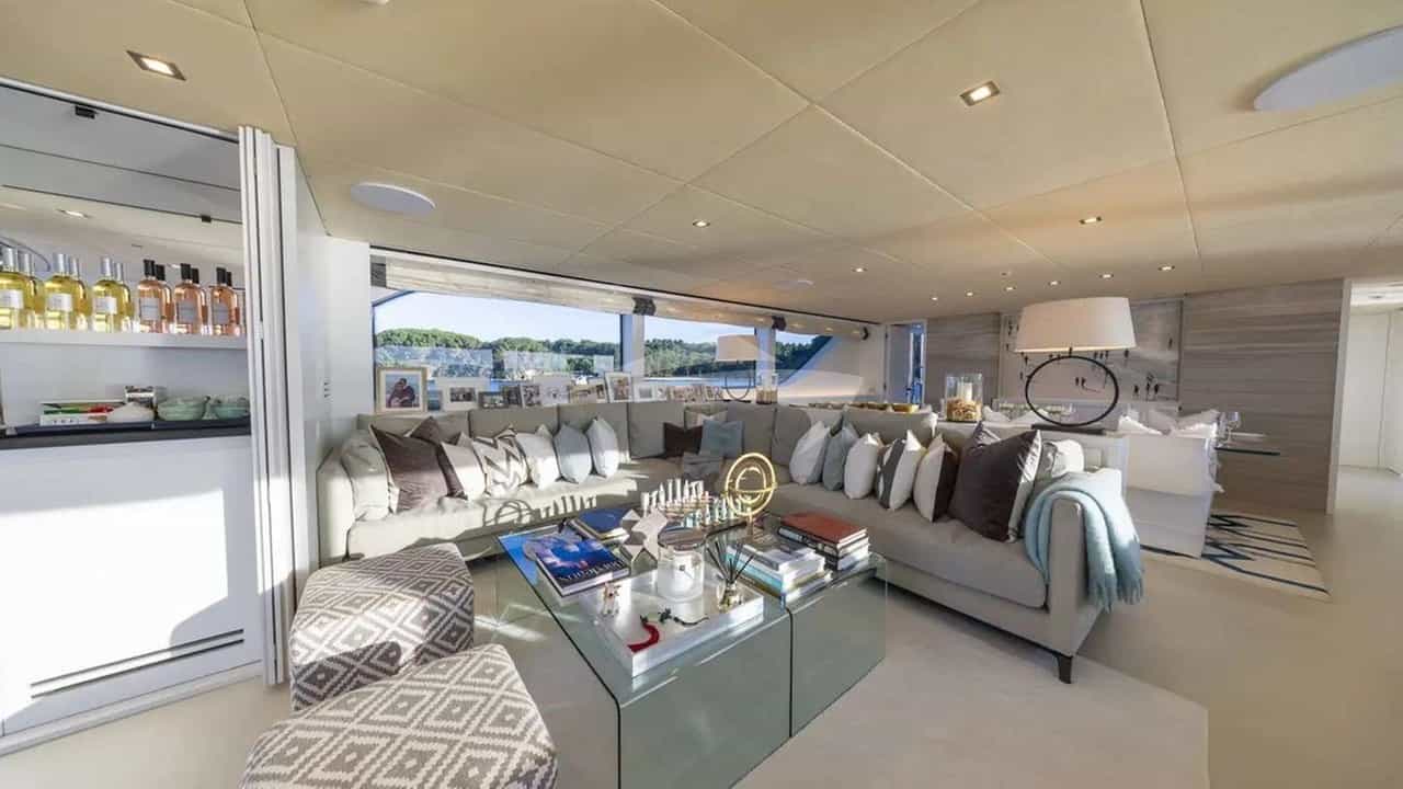 Les équipements à bord pour les clients de la location incluent la climatisation, un barbecue, une douche extérieure, une salle de sport, un système audio intérieur, une station d'accueil pour iPod, un jacuzzi sur le pont, une télévision par satellite, des stabilisateurs au mouillage, une plateforme de bain, un salon de télévision et le Wi-Fi.