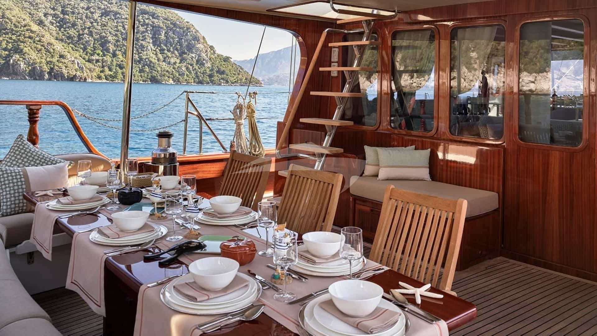 KAFTAN peut accueillir 9 invités dormant à bord dans 4 cabines.