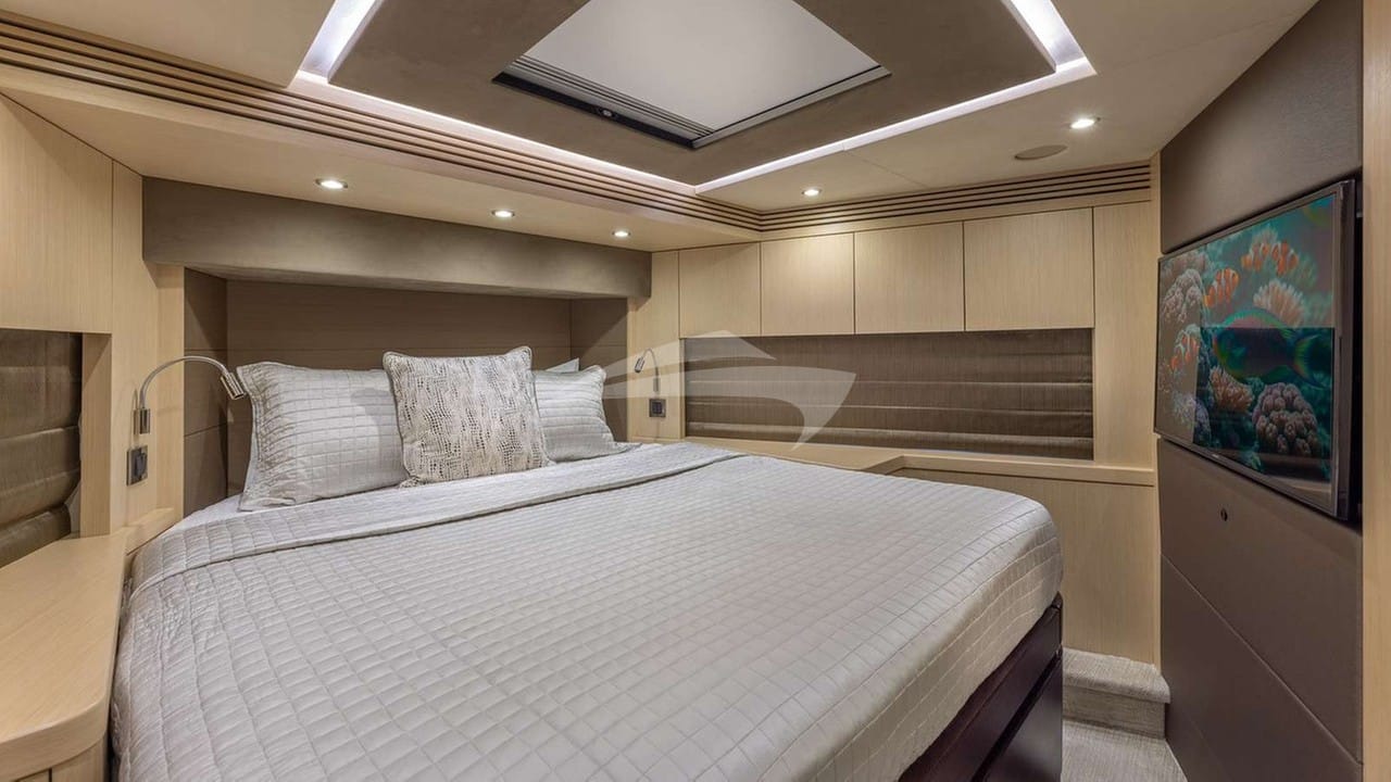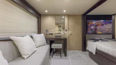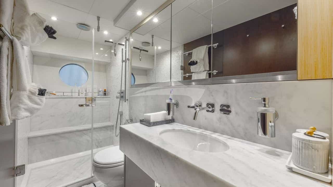 Les cabines comprennent une suite principale avec un lit king-size et une salle de bains privative, 2 cabines avec un lit king-size et une salle de bains privative, ainsi qu'une cabine avec un lit double et une salle de bains privative.