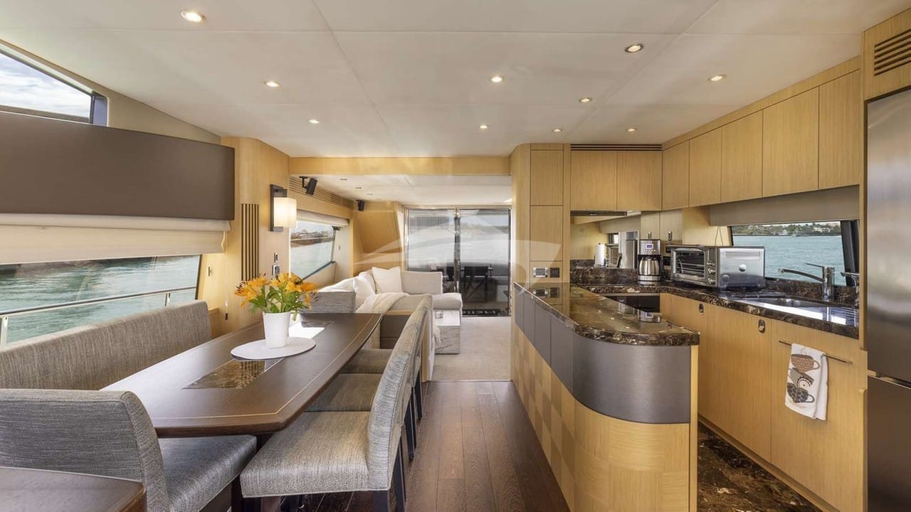 Les équipements à bord pour les passagers du charter incluent la climatisation et des stabilisateurs à l'ancre.