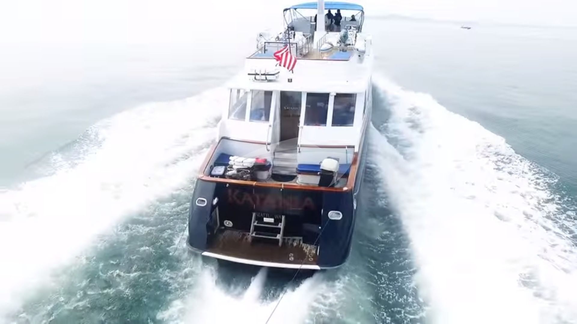 Le KATANIA de 100 pieds/30,5 m a été construit avec une coque en aluminium et est propulsé par un Caterpillar 3412 TI de 1 000 ch chacun avec une vitesse de croisière de 13 nœuds et une vitesse maximale de 18 nœuds.