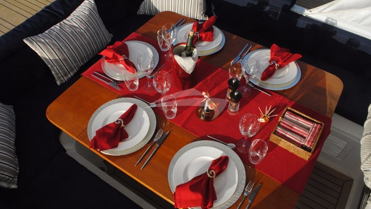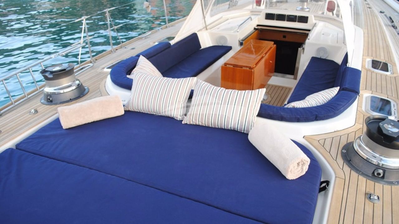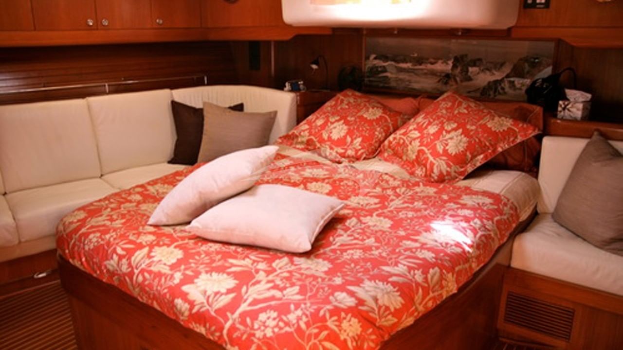 LA FORZA DEL DESTINO peut accueillir 6 personnes dans 3 cabines comprenant une suite principale avec un lit queen-size et une salle de bains privative, ainsi que 2 cabines avec un lit double et un lit pullman et une salle de bains privative.