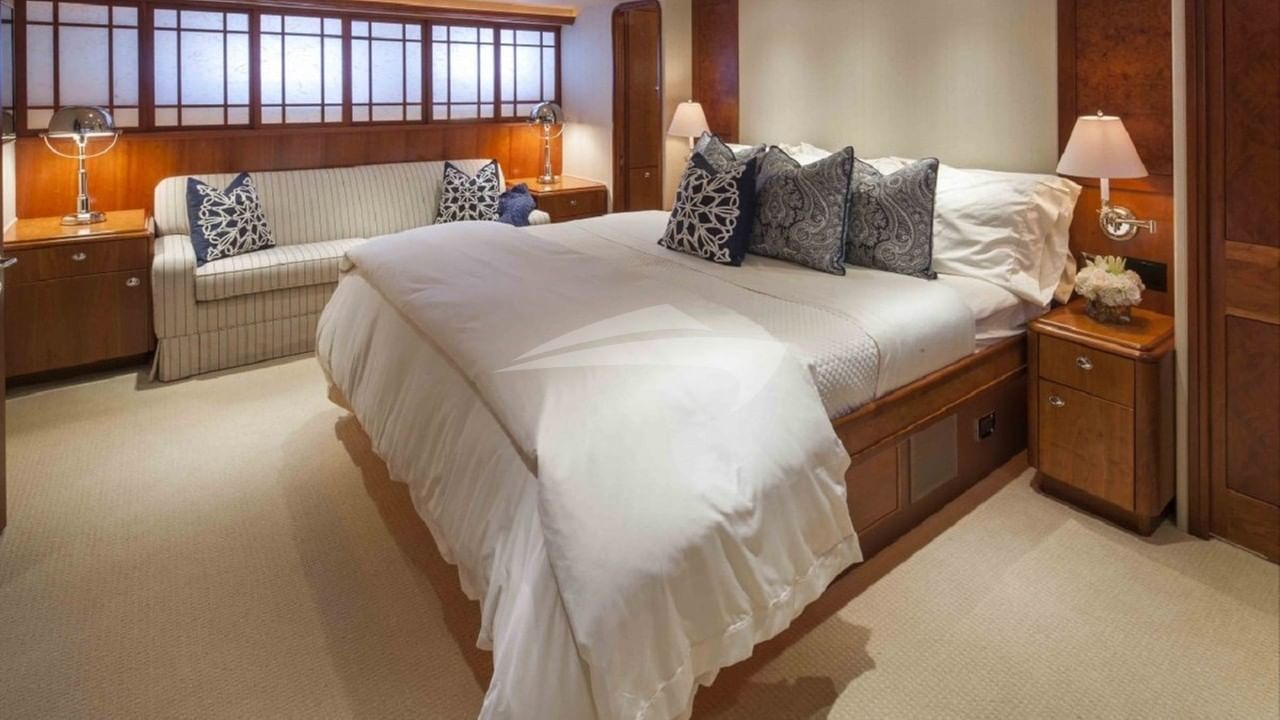 SHARON LEE peut accueillir 8 personnes dans 4 cabines comprenant une suite principale avec un lit king-size et une salle de bains privative, une cabine avec un lit queen-size et une salle de bains privative, une cabine avec un lit queen-size et une salle de bains privative, ainsi qu'une suite VIP avec un lit queen-size et une salle de bains privative salle de bains.