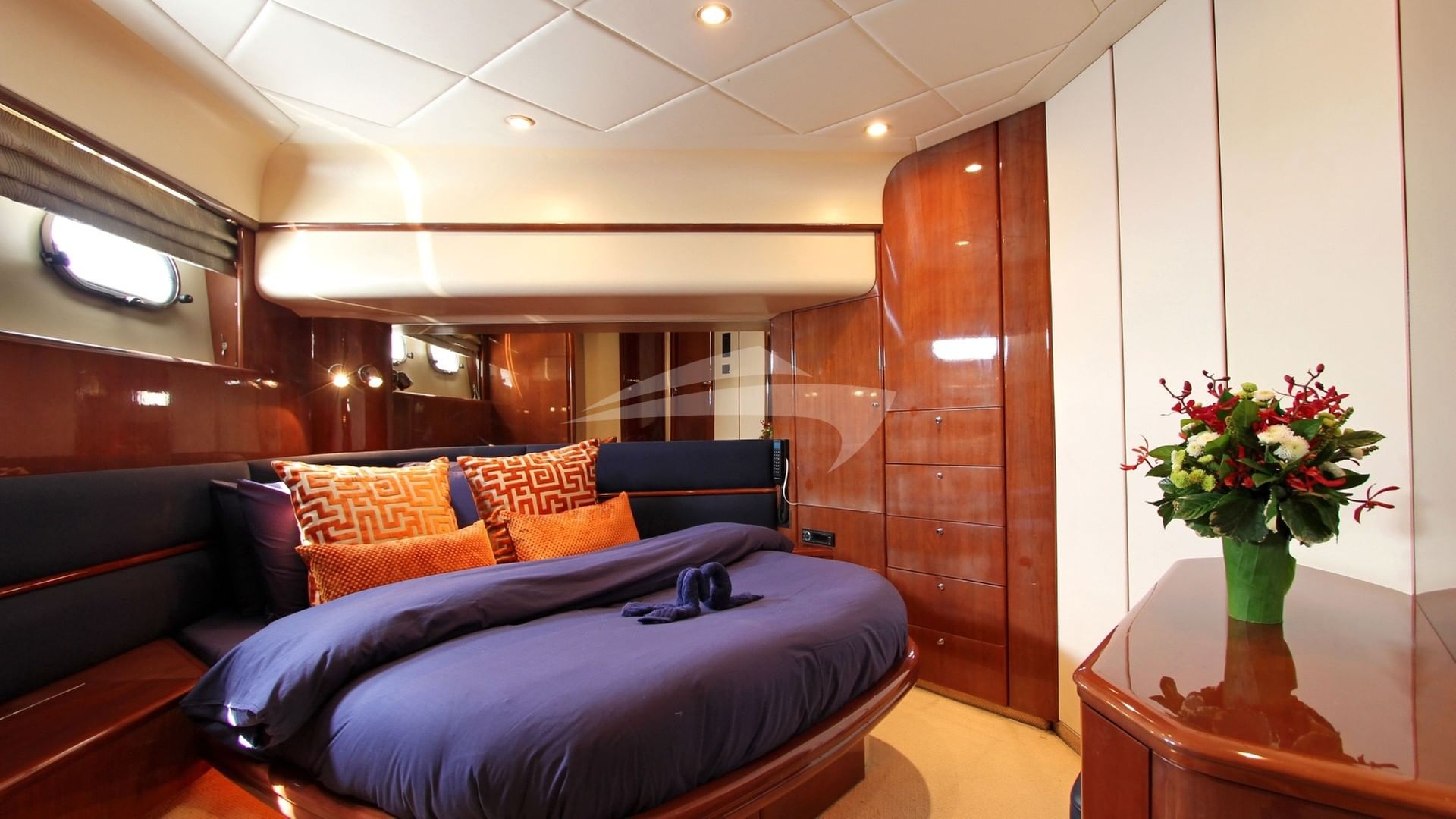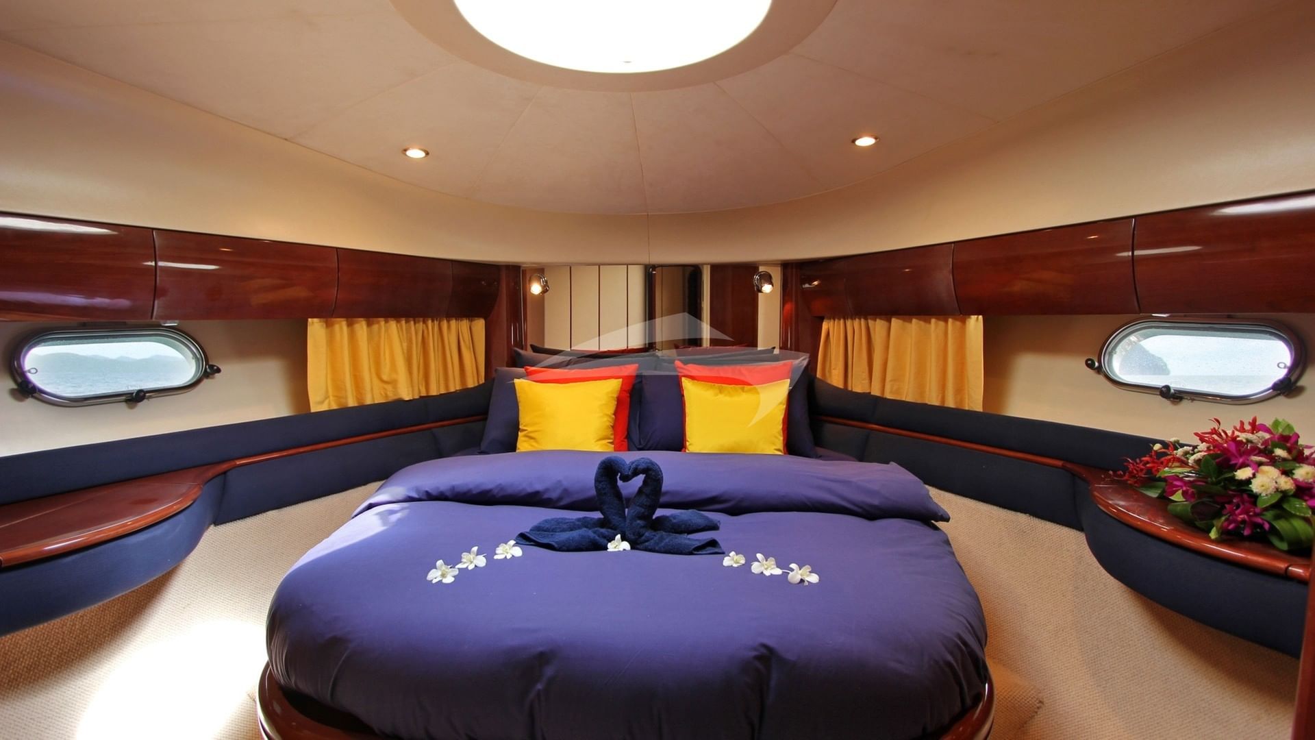 L'ISABELLA ROSE peut accueillir 7 personnes dans 4 cabines comprenant une suite principale avec un lit king-size et une salle de bains privative située en dessous de l'avant, une cabine avec 2 lits simples et un lit pullman et une salle de bains privative, une suite VIP avec un lit queen-size et une salle de bains privative. cabine avec un lit simple et un lit pullman.