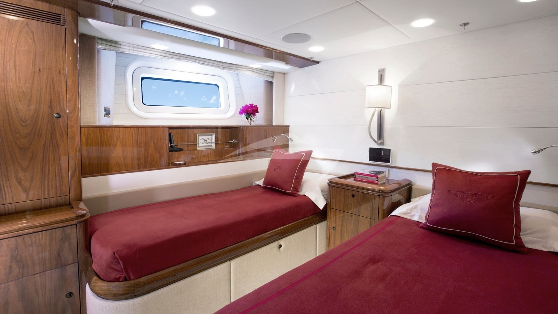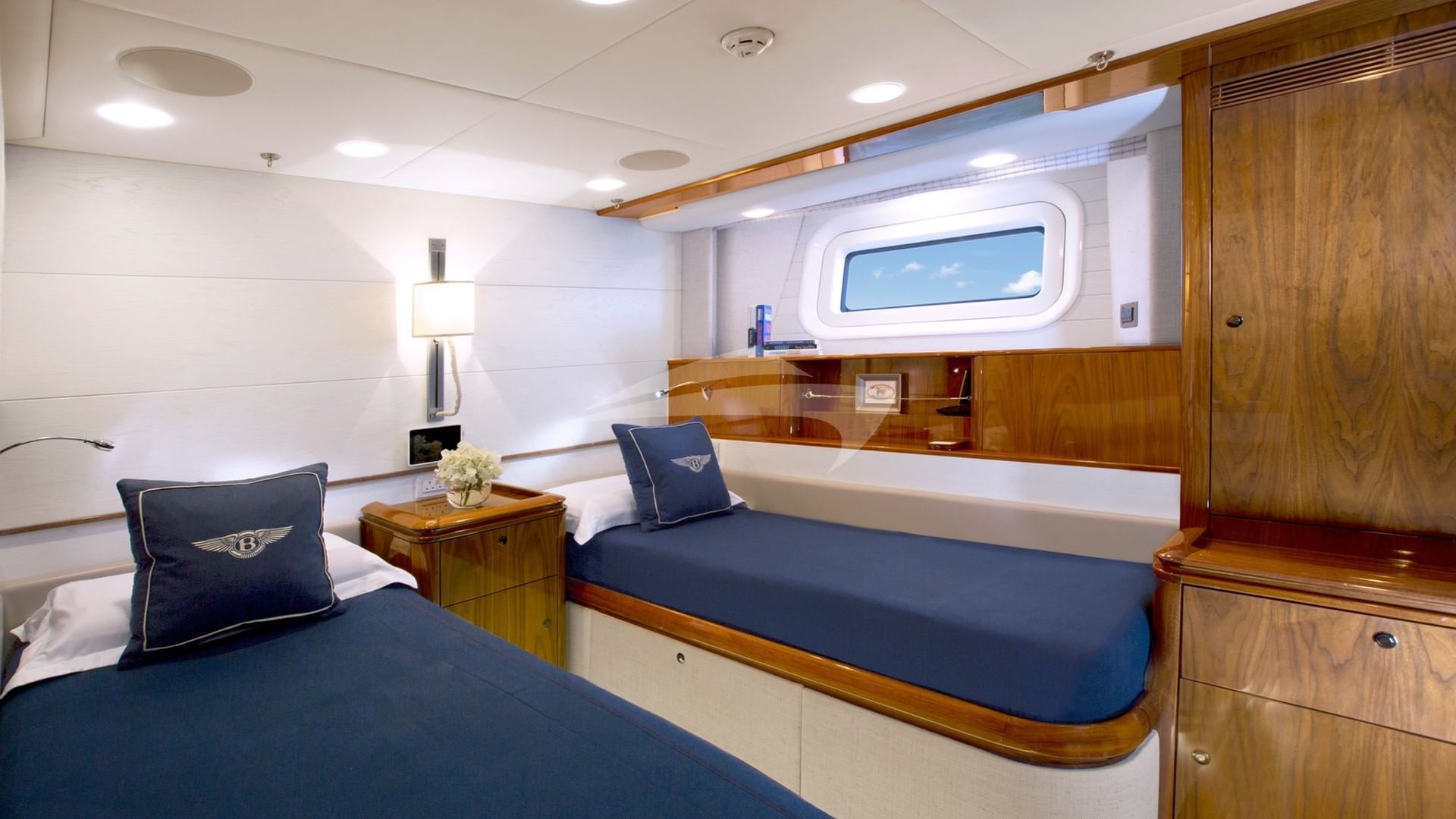 PENELOPE peut accueillir 6 personnes dans 3 cabines comprenant une suite principale avec un lit king-size et une salle de bains privative située sur le pont arrière, une cabine avec un lit double et une salle de bains privative et une cabine avec un lit double et une salle de bains privative.
