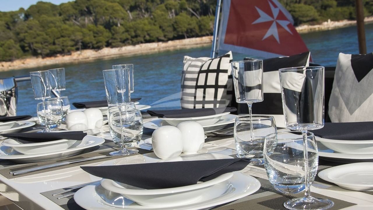 VENTURE peut accueillir 9 invités dormant à bord dans 4 cabines, avec la possibilité de naviguer avec jusqu'à 13 invités et divertir des groupes jusqu'à 13 invités lorsqu'ils sont au mouillage ou amarrés dans une marina.