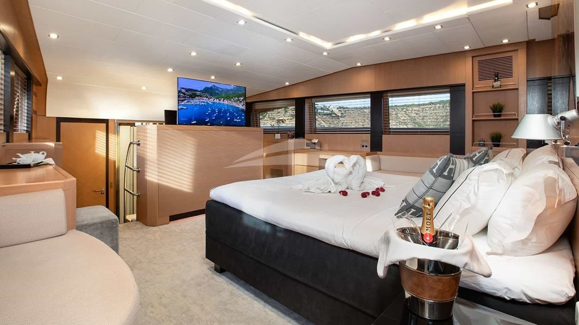 Suite principale : Une retraite royale dotée d'un lit king-size. Deux cabines doubles : chacune avec un lit queen-size, offrant des arrangements de couchage luxueux. Deux cabines convertibles : équipées de quatre lits simples et de deux lits convertibles, garantissant des options de couchage amples et flexibles.