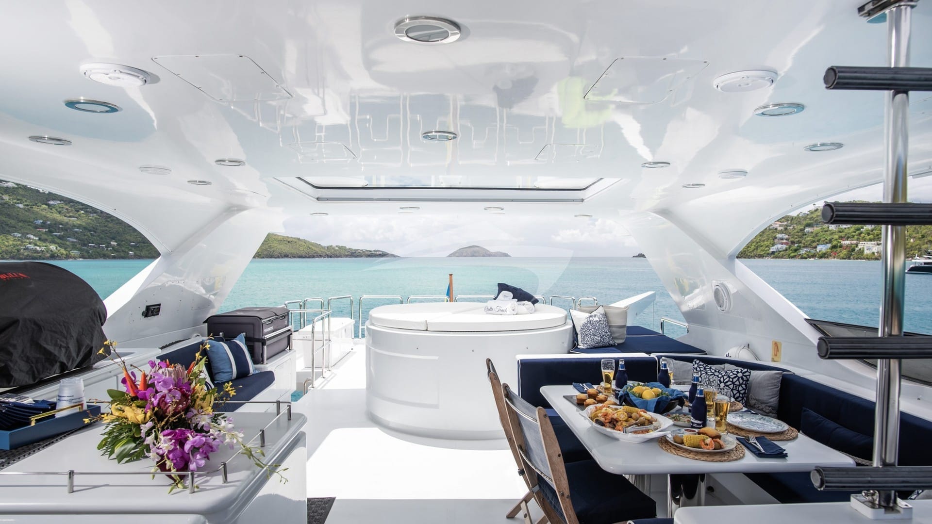 Les équipements à bord pour les clients de la location incluent la climatisation, un jacuzzi sur le pont et une connexion Wi-Fi.