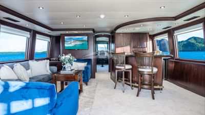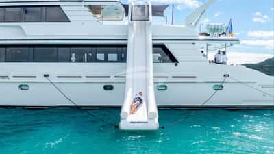Les équipements à bord pour les clients de la location incluent la climatisation, un club de plage, des équipements d'exercice, une salle de sport, un jacuzzi sur le pont, des stabilisateurs et le Wi-Fi.