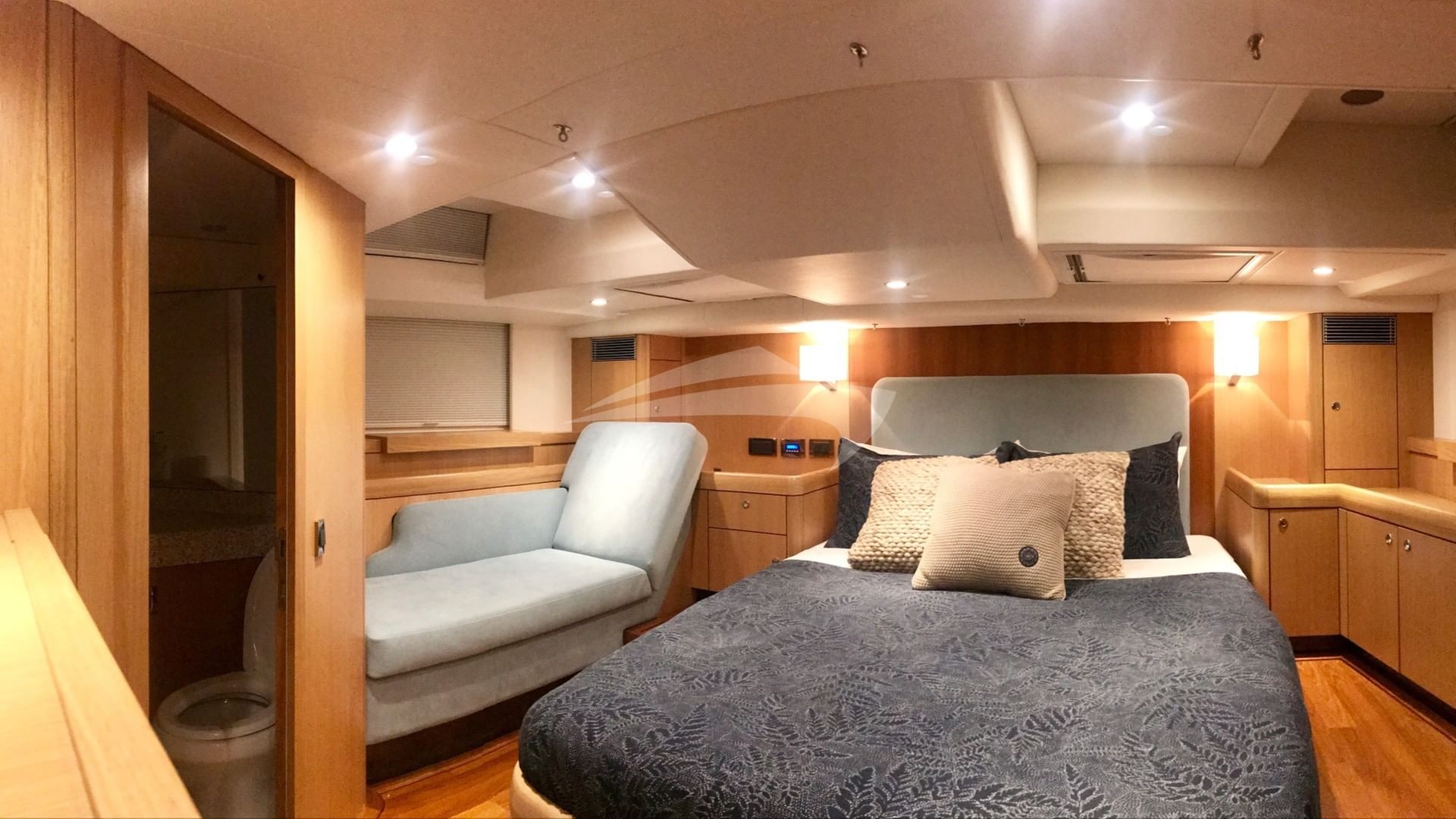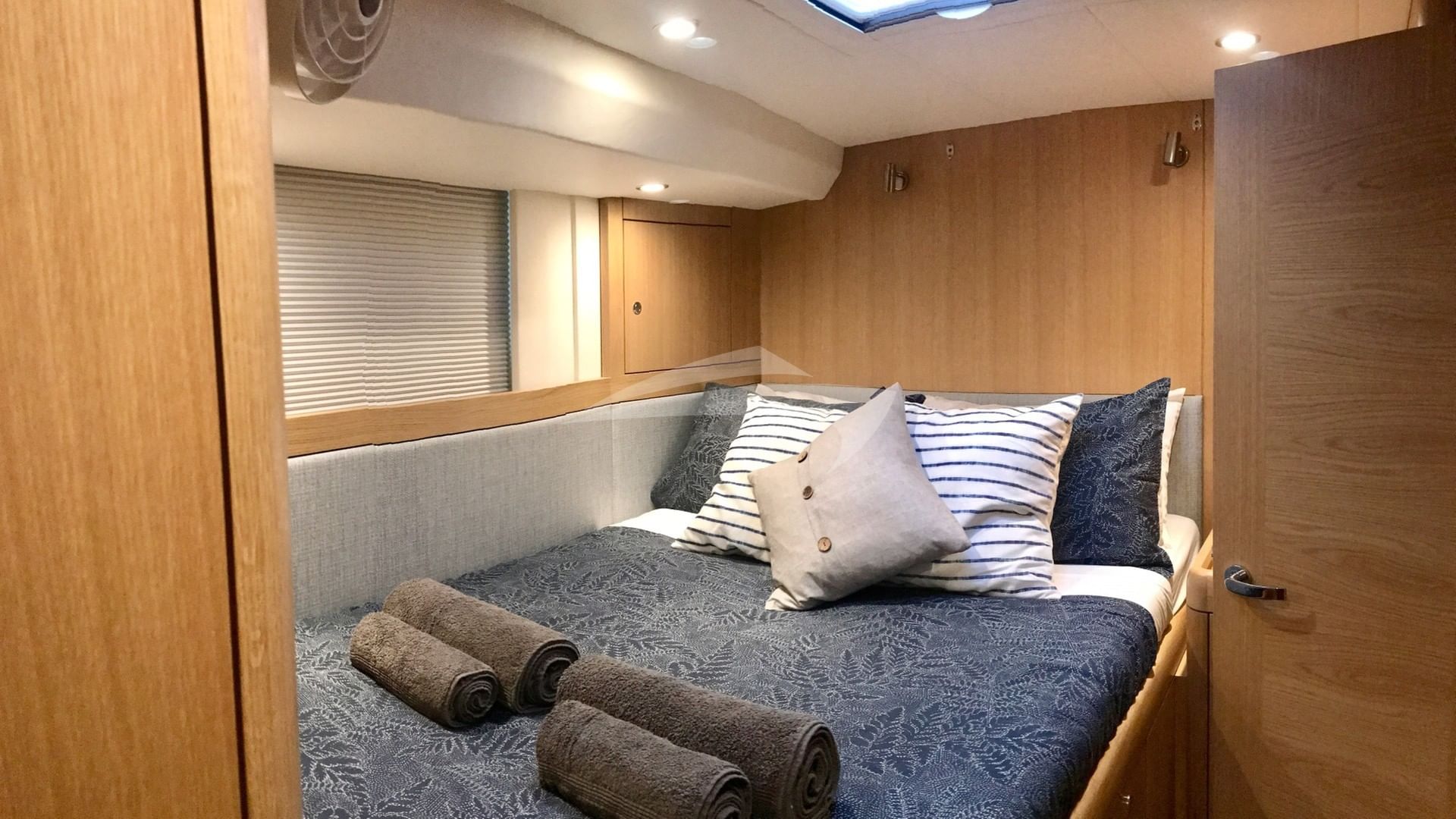 LA CARTE D'EMBARQUEMENT IV peut accueillir 4 personnes dans 2 cabines comprenant une suite principale avec un lit queen-size et une salle de bains privative située à l'arrière et une cabine avec un lit double et une salle de bains privative.
