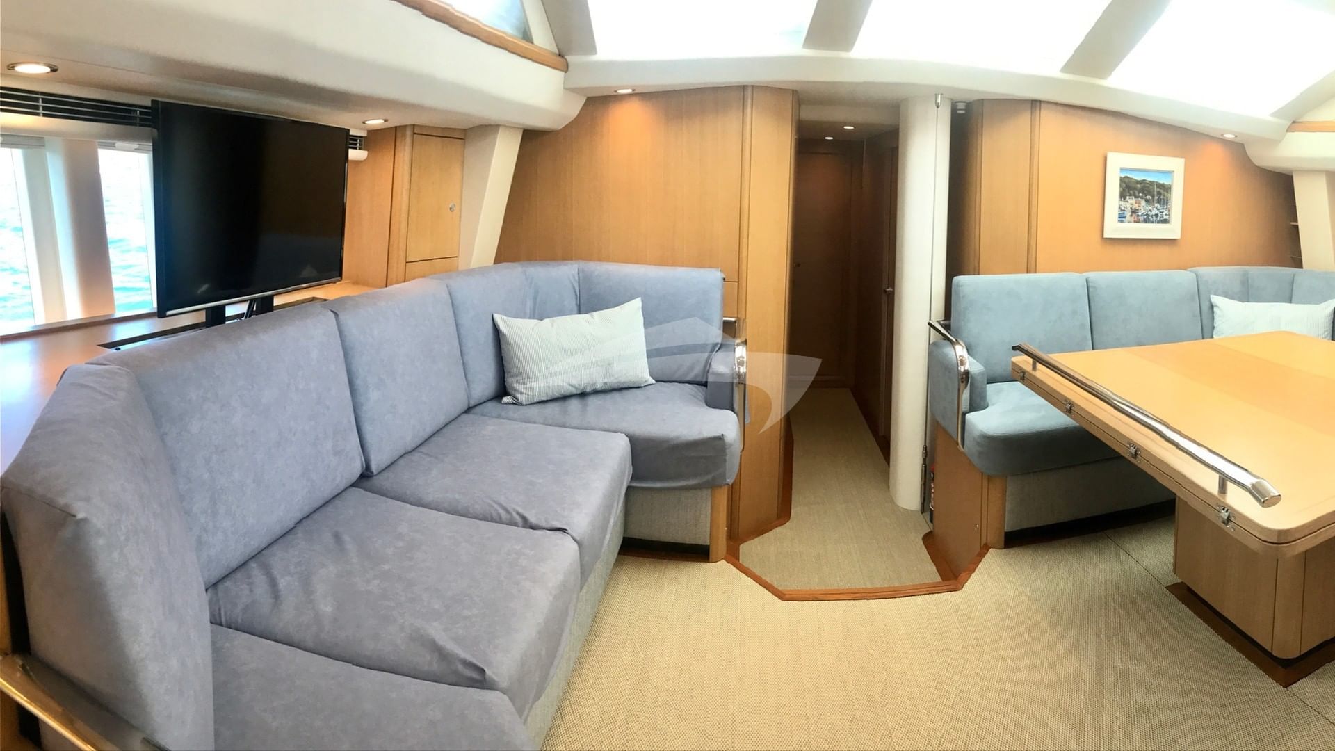 Les équipements à bord incluent un salon de télévision et une connexion Wi-Fi.
