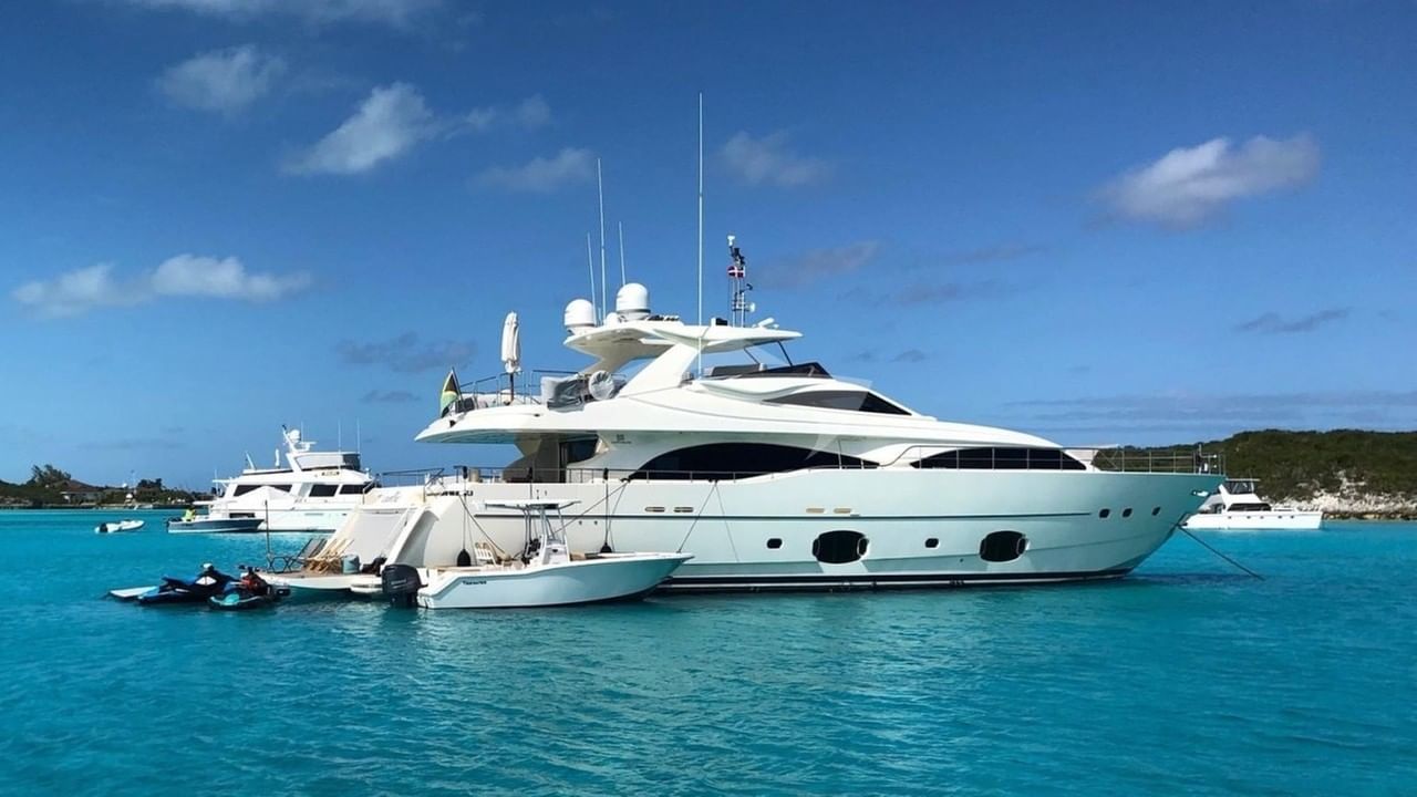 Les équipements à bord incluent la climatisation, du matériel de pêche léger, un jacuzzi sur le pont, des stabilisateurs au mouillage et une connexion Wi-Fi.