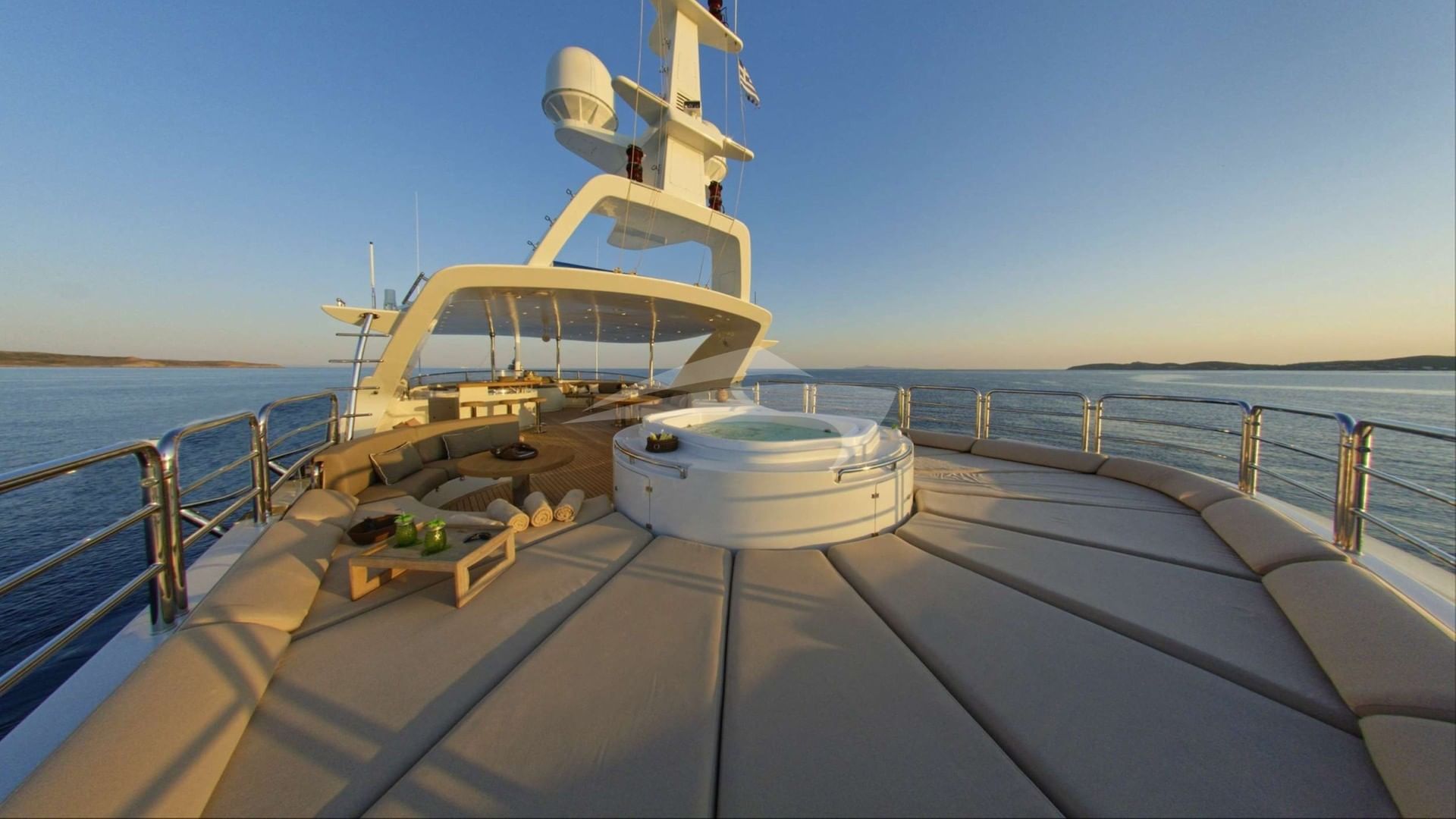 Les équipements à bord pour les clients de la location incluent la climatisation, un club de plage, une douche extérieure, une salle de sport, des équipements de pêche légers, une salle de sport, un système audio intérieur, un jacuzzi dans la cabine principale, un jacuzzi sur le pont, une télévision par satellite, un sauna, des stabilisateurs, des stabilisateurs au point d'ancrage, un accès Internet par satellite Starlink, des coussins solaires, des chaises longues, une plateforme de bain, une télévision dans toutes les cabines, un salon de télévision et le Wi-Fi.