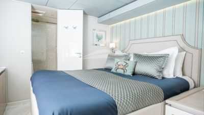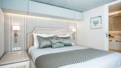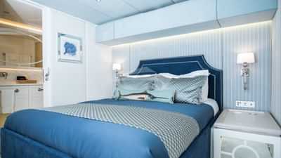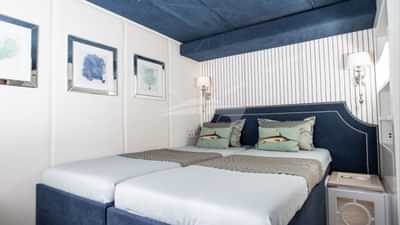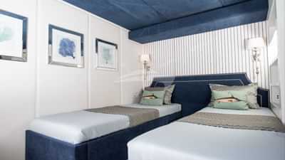 Les cabines d'hôtes comprennent 4 suites VIP avec un lit queen-size et une salle de bains privative, ainsi qu'une cabine avec un lit double et une salle de bains privative.
