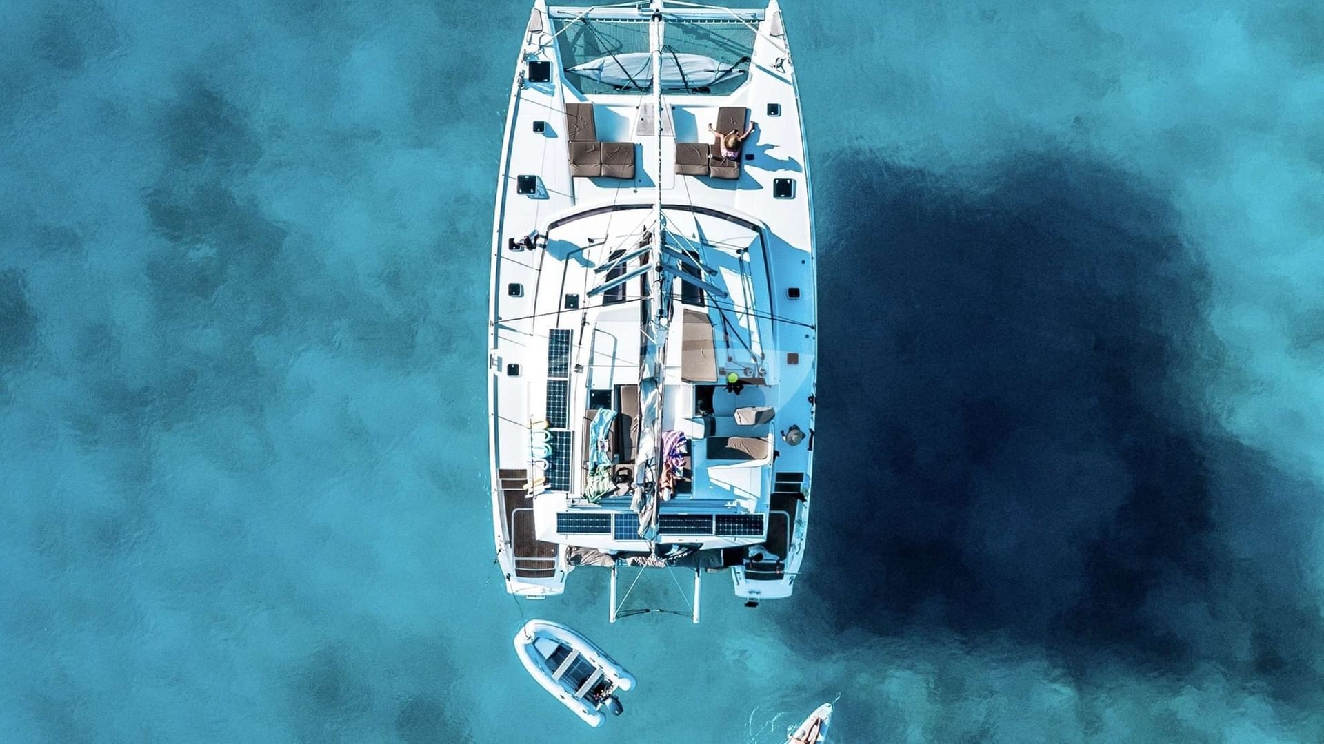 I servizi a bordo includono aria condizionata, barbecue, doccia esterna, impianto audio interno, sala TV e Wi-Fi.