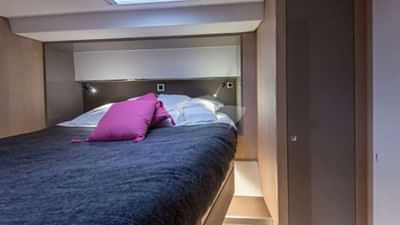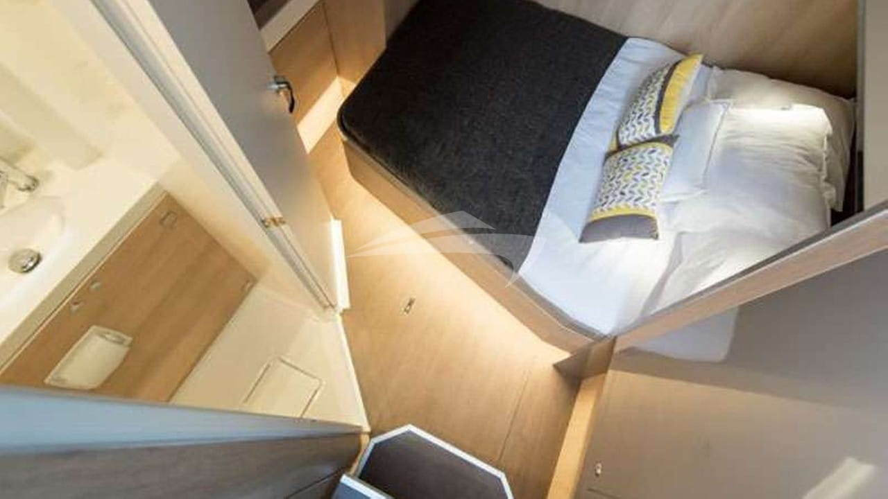 Le cabine ospiti comprendono una suite principale con letto matrimoniale e bagno interno, 4 cabine con letto matrimoniale e bagno interno e 2 cabine con letto singolo.