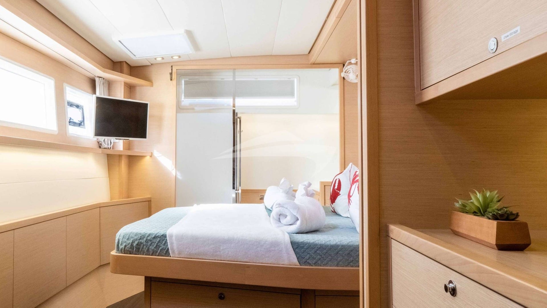 FELIX può ospitare 8 ospiti in 6 cabine composte da una suite principale con letto matrimoniale e bagno privato, 3 cabine con letto matrimoniale e bagno privato e 2 cabine con letto matrimoniale.