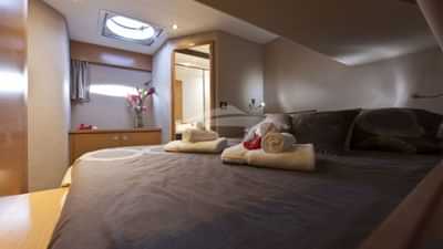 LA VANDALAY può ospitare 10 persone in 5 cabine composte da una suite principale con letto queen size e bagno interno, 3 cabine con letto queen size e bagno privato e una cabina con letto matrimoniale e bagno interno.