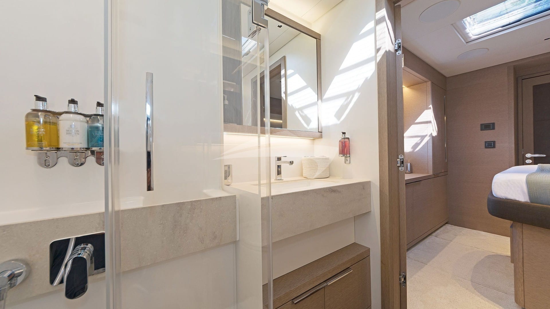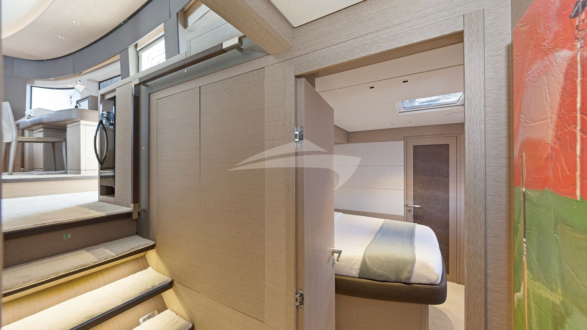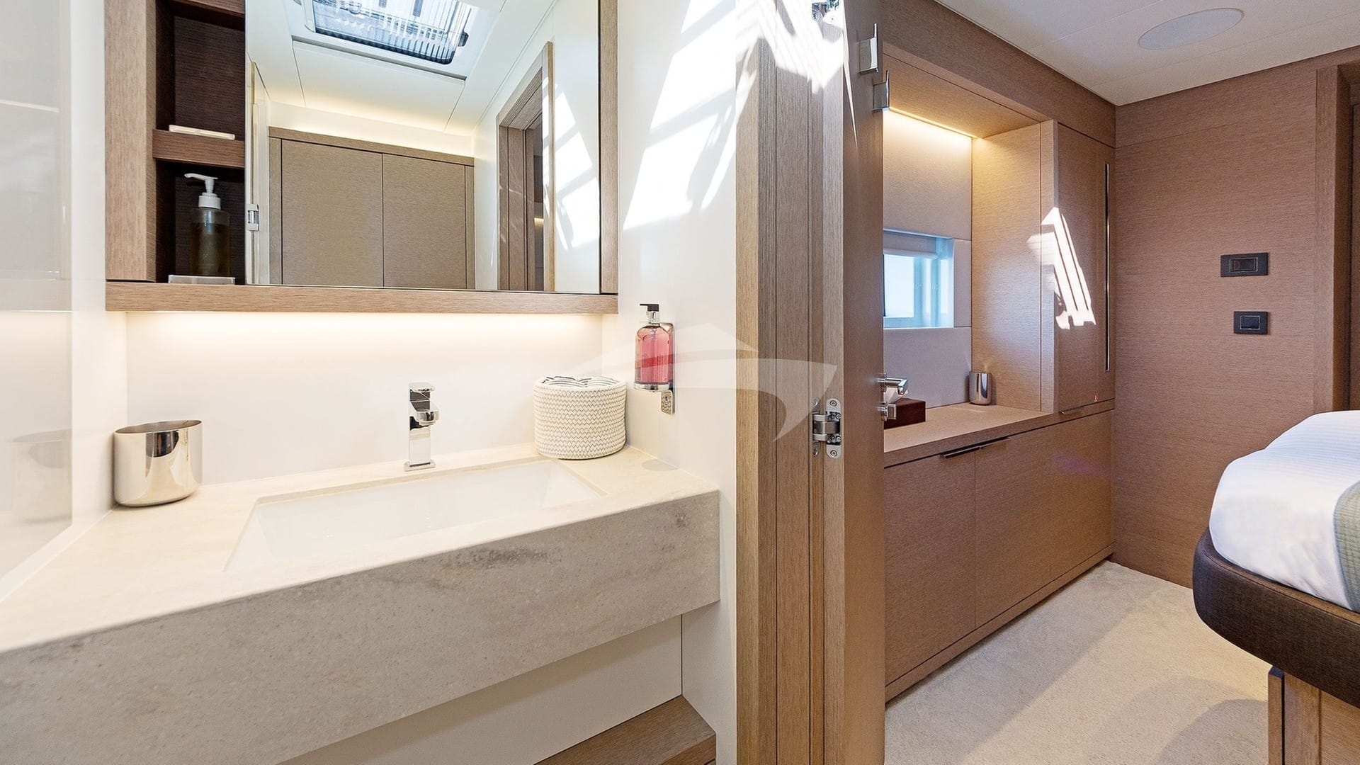 Le cabine ospiti comprendono una suite principale con letto matrimoniale e bagno interno, una suite VIP con letto matrimoniale e bagno interno, 2 cabine con letto matrimoniale e bagno interno e una cabina con 2 letti singoli e bagno interno.