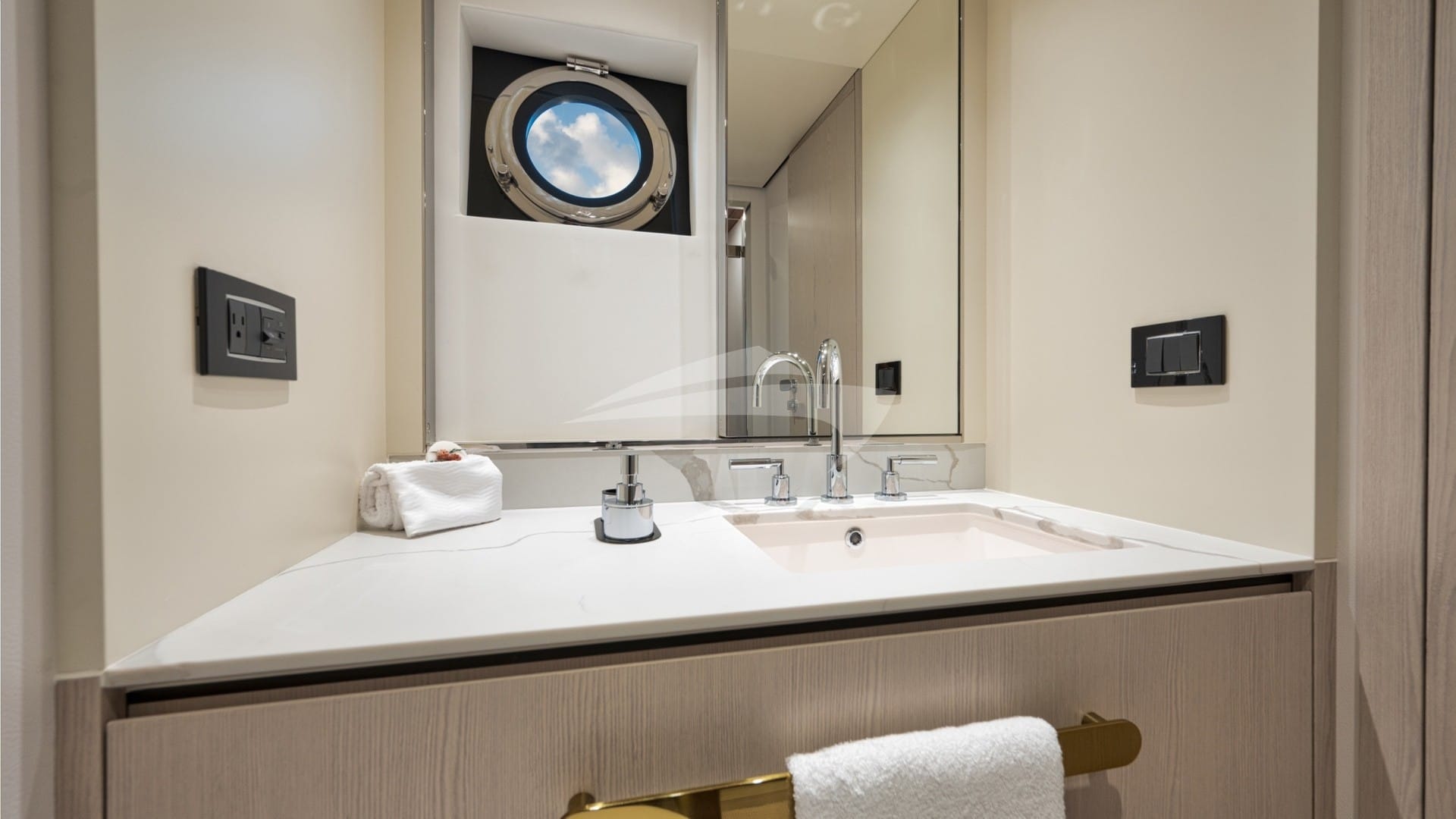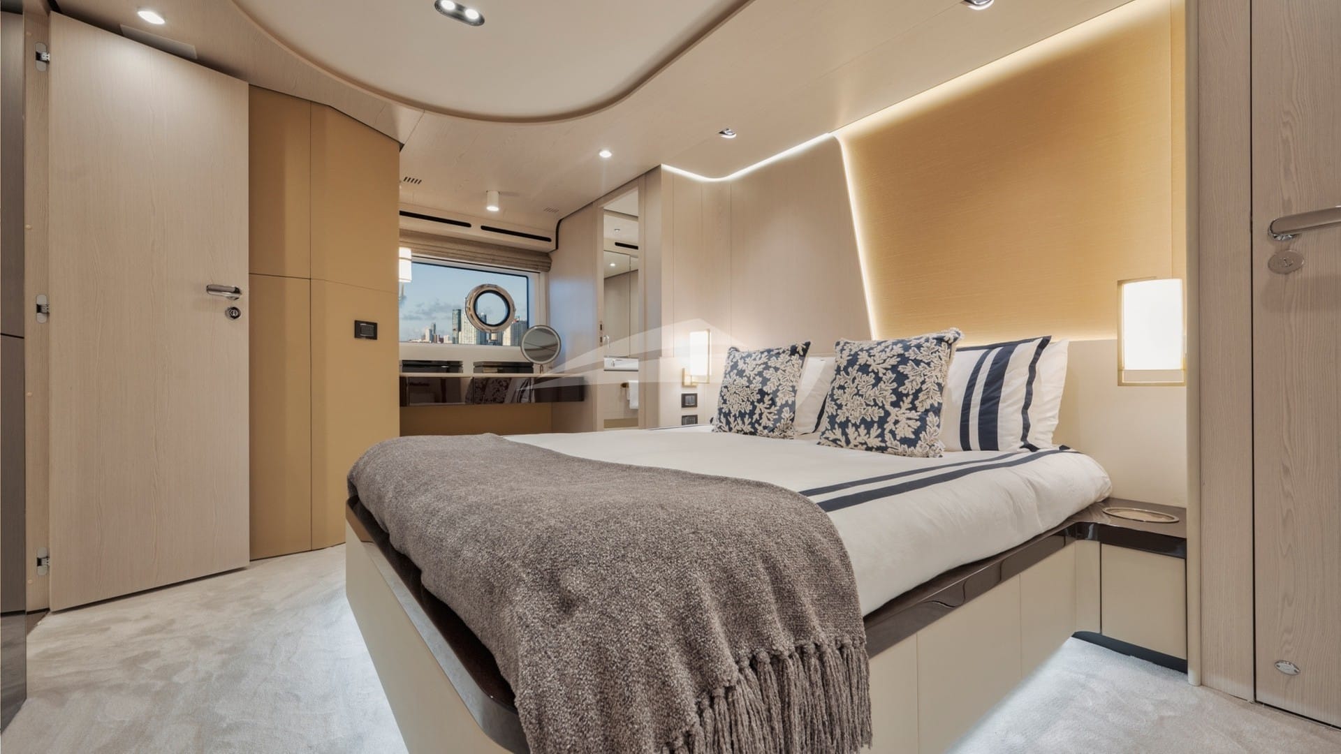 Le cabine ospiti comprendono una suite principale con un letto king size e bagno privato, una suite VIP con letto queen size e bagno privato, una cabina con letto matrimoniale e bagno privato e una cabina con letto matrimoniale.