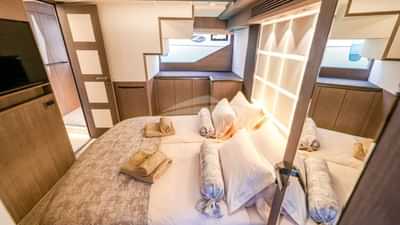 Le cabine ospiti comprendono una suite principale con letto king size, una cabina con letto queen size e 2 cabine con un letto singolo.