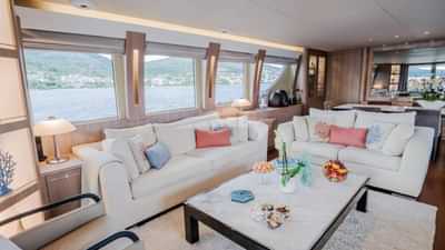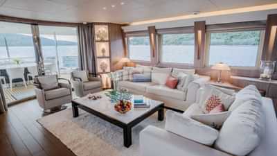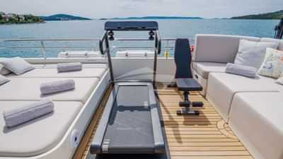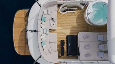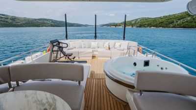 I servizi a bordo per gli ospiti charter includono aria condizionata e vasca idromassaggio sul ponte.