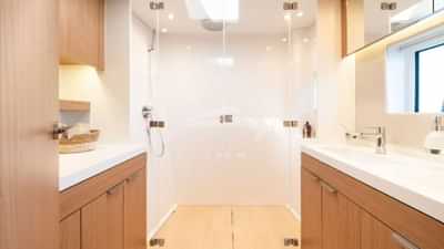 DREAM ON può ospitare 8 ospiti in 4 cabine composte da una suite principale con letto matrimoniale e bagno privato e 3 cabine con letto matrimoniale e bagno privato.