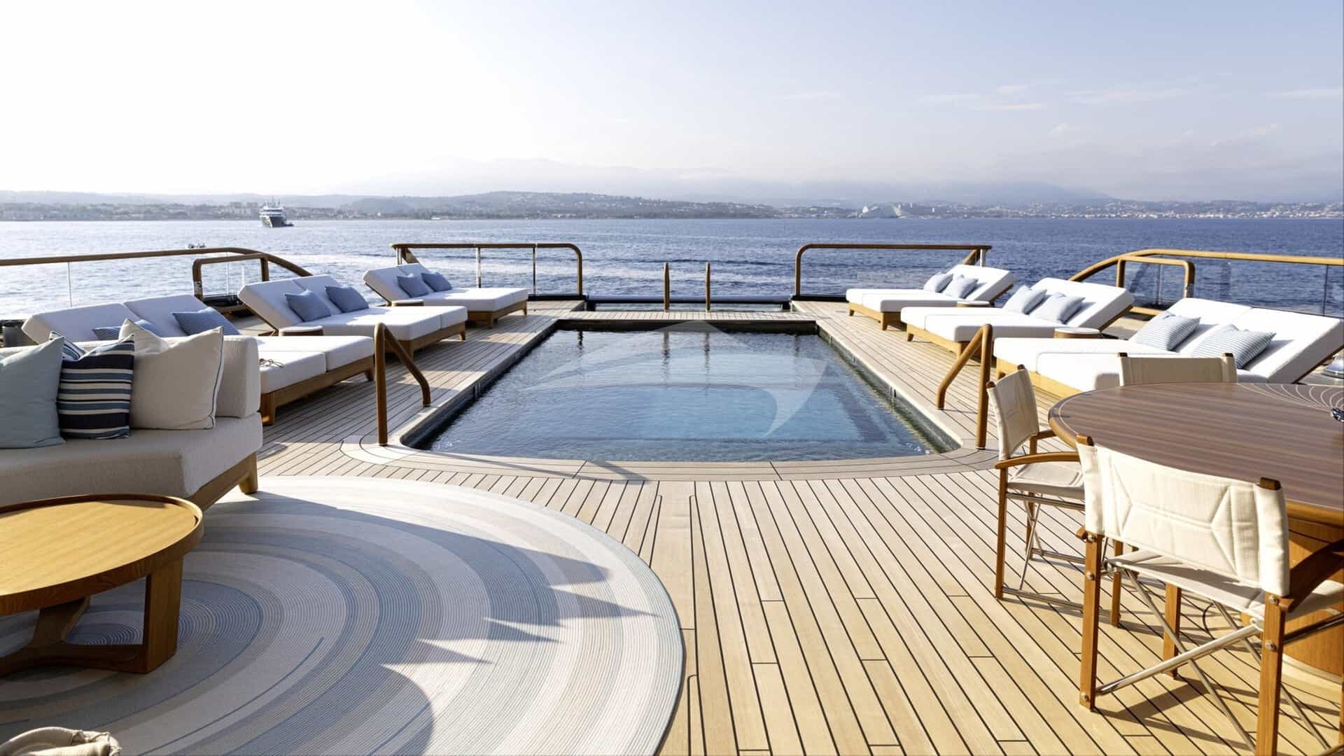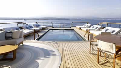 I servizi a bordo per gli ospiti charter includono aria condizionata, beach club, cinema, ascensore, palestra, eliporto, vasca idromassaggio sul ponte, TV satellitare, sauna, spa, stabilizzatori, bagno turco, piscina e Wi-Fi.