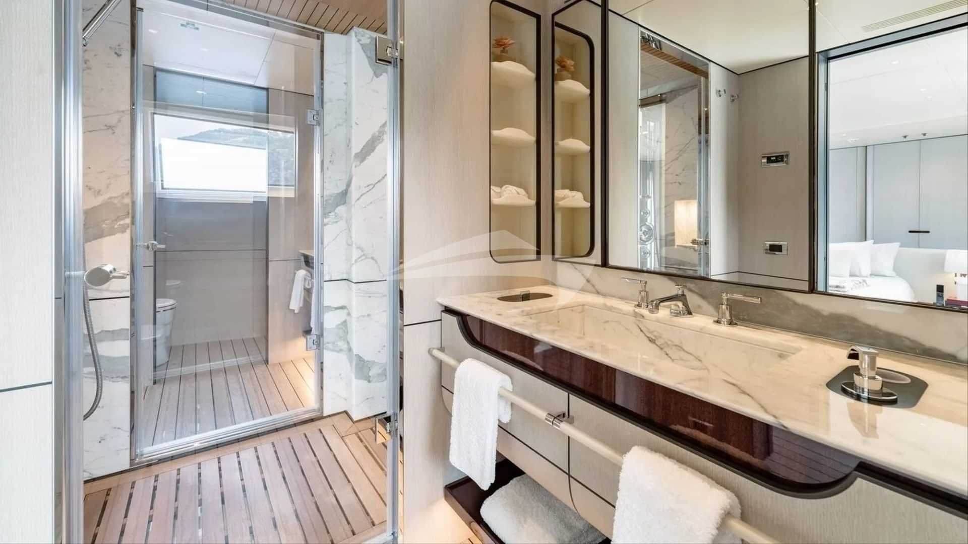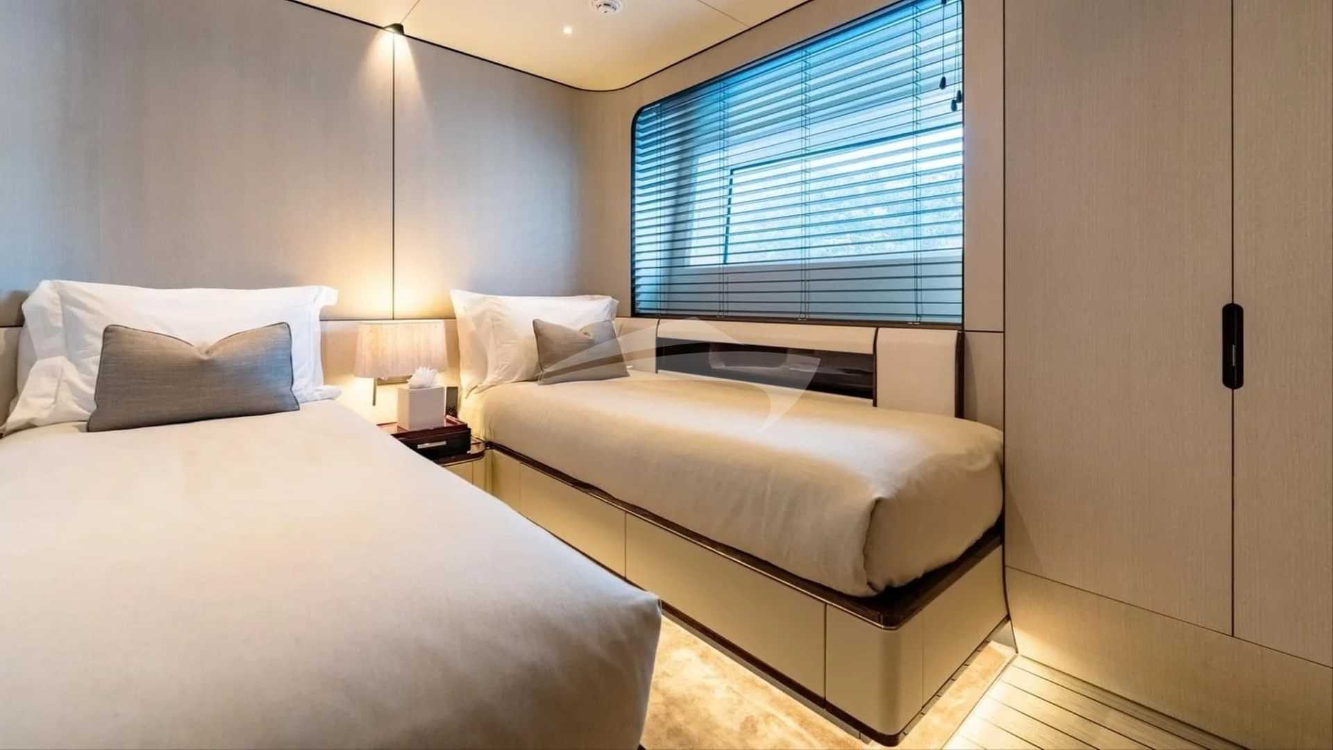 Le cabine ospiti comprendono una suite principale con letto king size e bagno privato, 2 suite VIP con letto king size e bagno privato e 2 cabine con letto matrimoniale e bagno privato e 2 cabine con letto singolo e bagno privato.