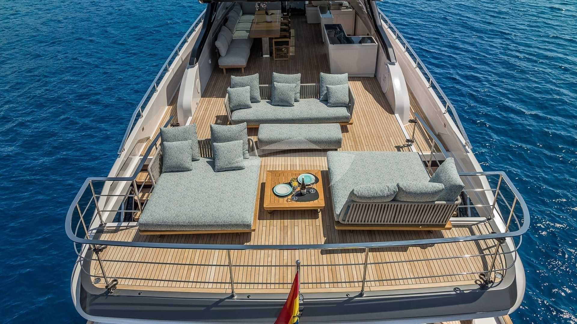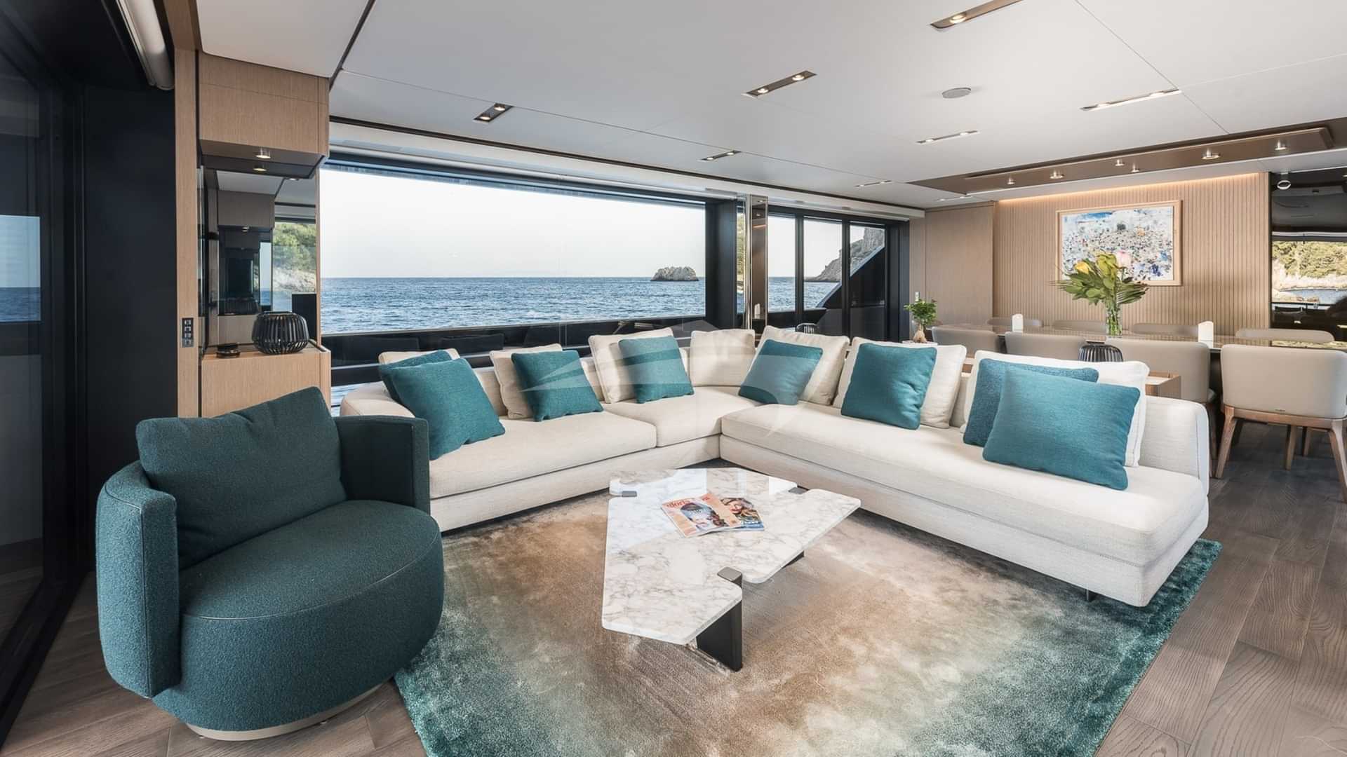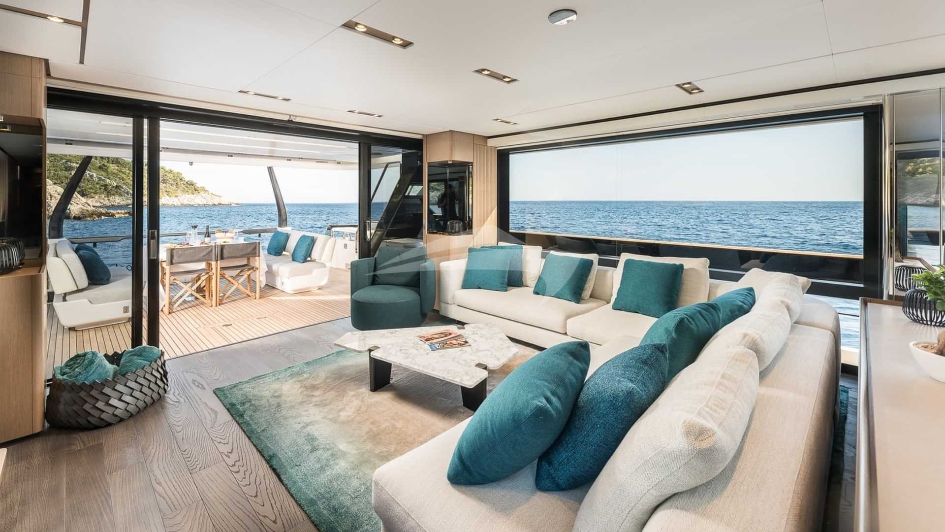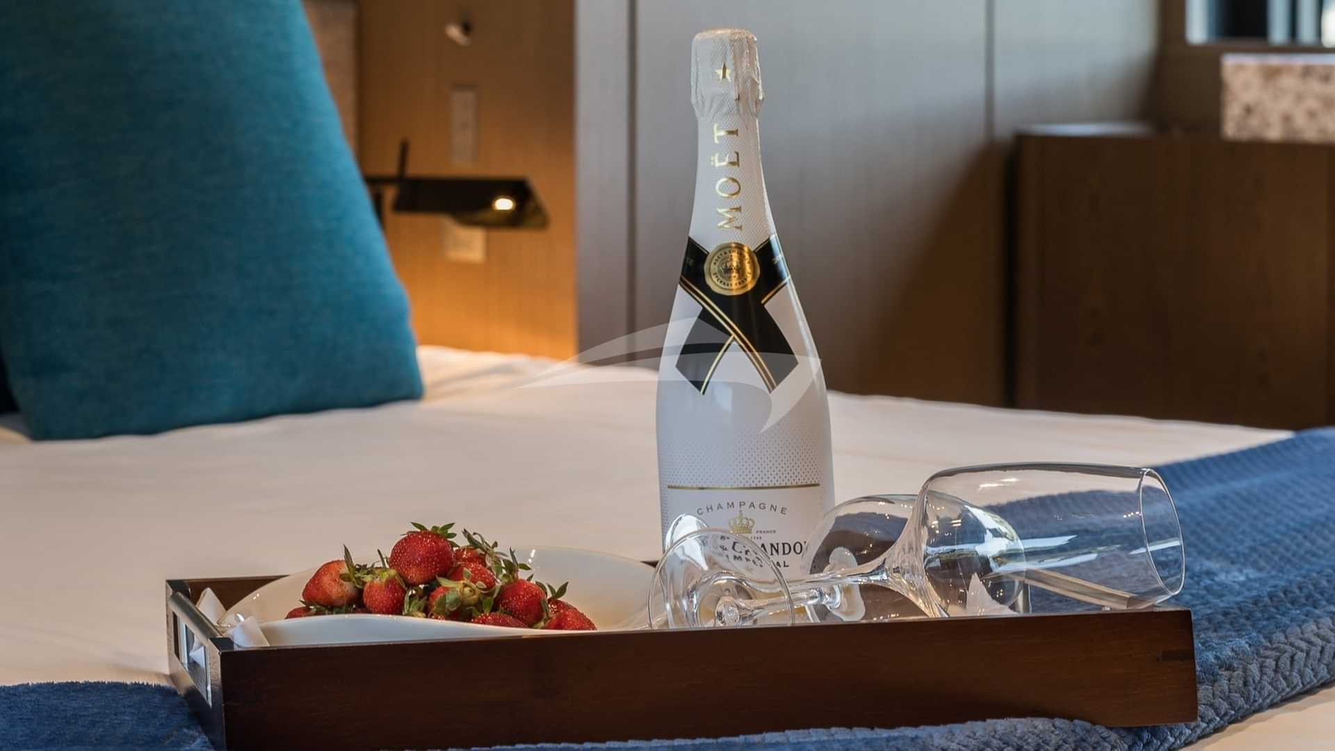 I servizi a bordo per gli ospiti charter includono aria condizionata, bar all'aperto, stabilizzatori, stabilizzatori all'ancora, lettini prendisole, solarium, lettini, piattaforma da nuoto e Wi-Fi.