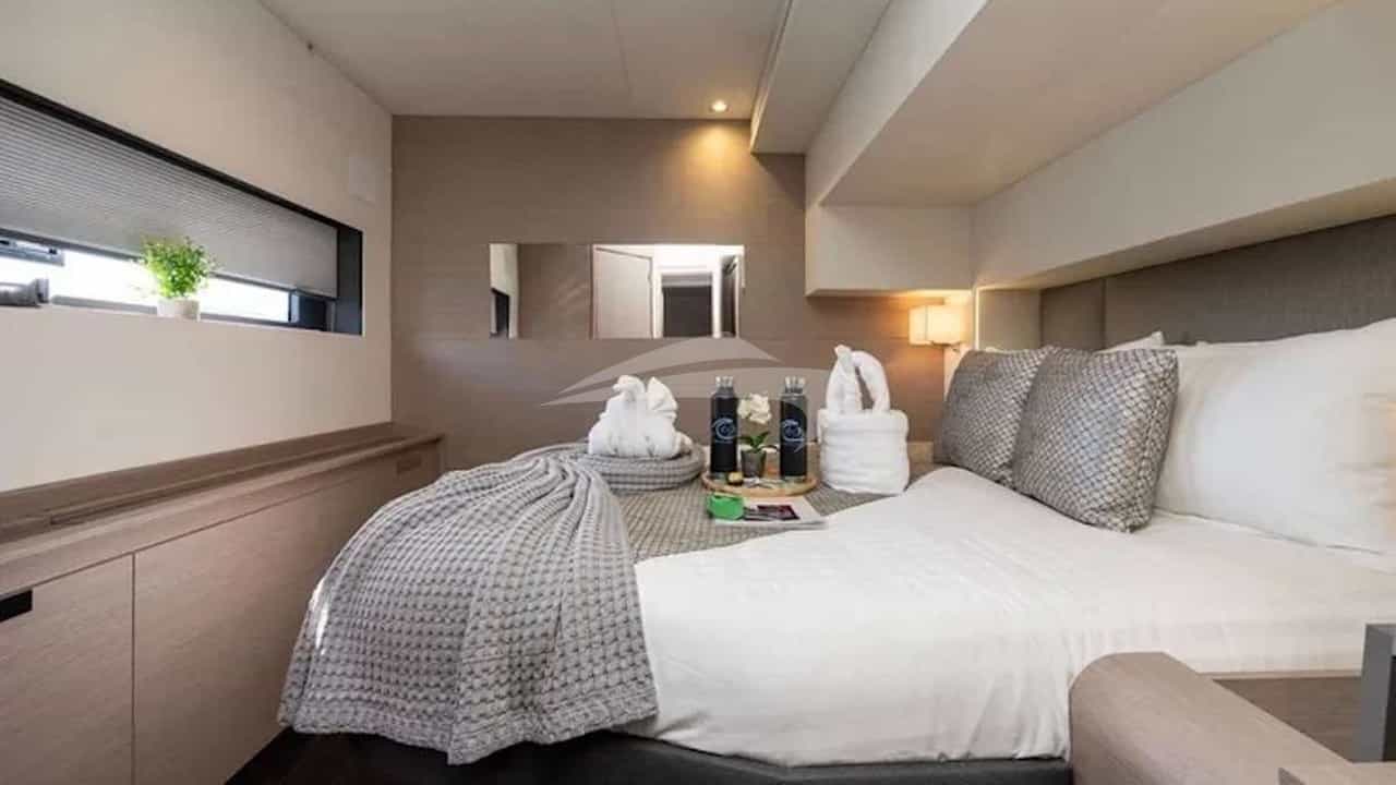 Le cabine ospiti comprendono una suite principale con letto queen size e bagno interno e 4 cabine con letto queen size e bagno interno.