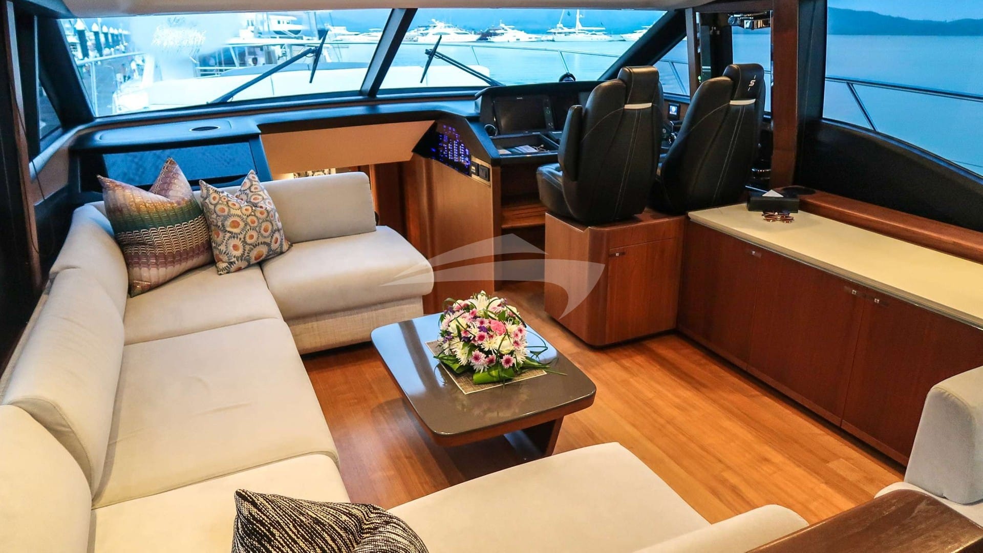 I servizi a bordo per gli ospiti charter includono aria condizionata, barbecue, doccia esterna, impianto audio interno, piattaforma da nuoto, sala TV e Wi-Fi.