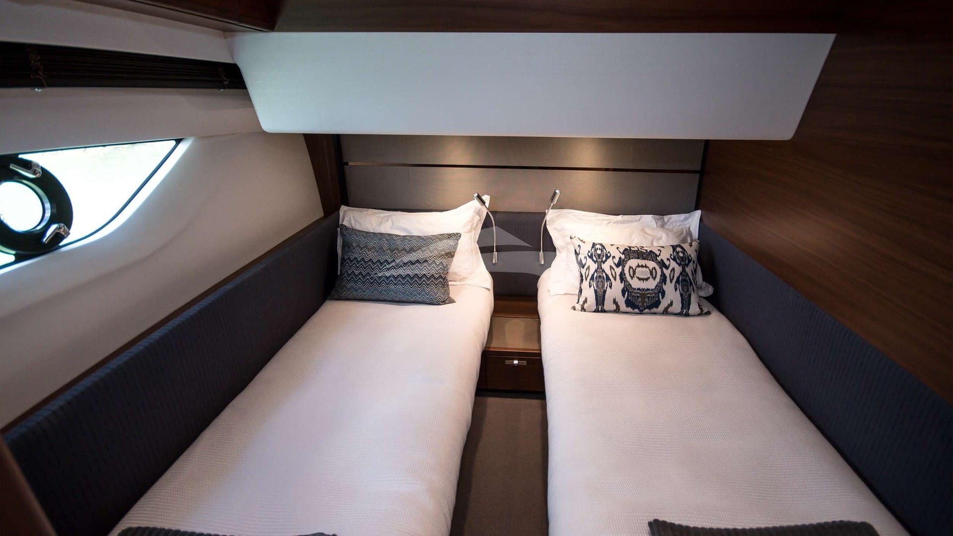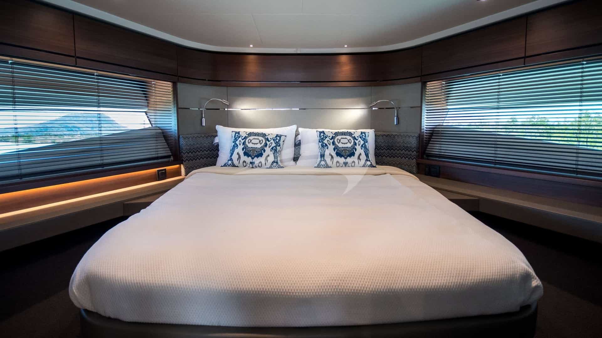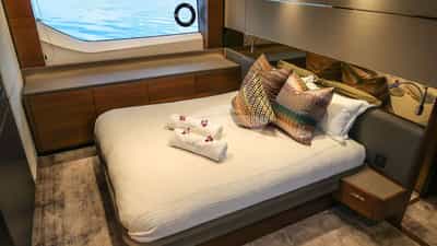 Le cabine ospiti comprendono una suite principale con letto king size e bagno privato, una cabina con letto matrimoniale e bagno privato, 3 cabine con letto matrimoniale e una cabina con letto matrimoniale e una cabina con letto matrimoniale e bagno privato.