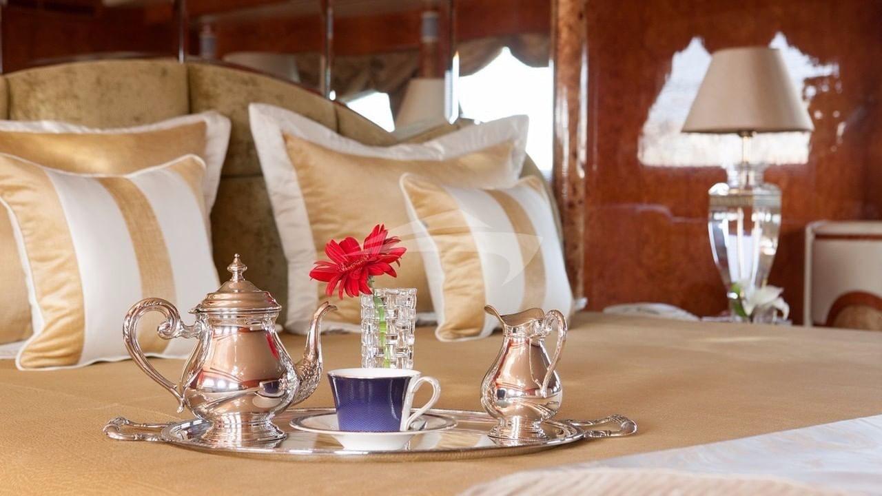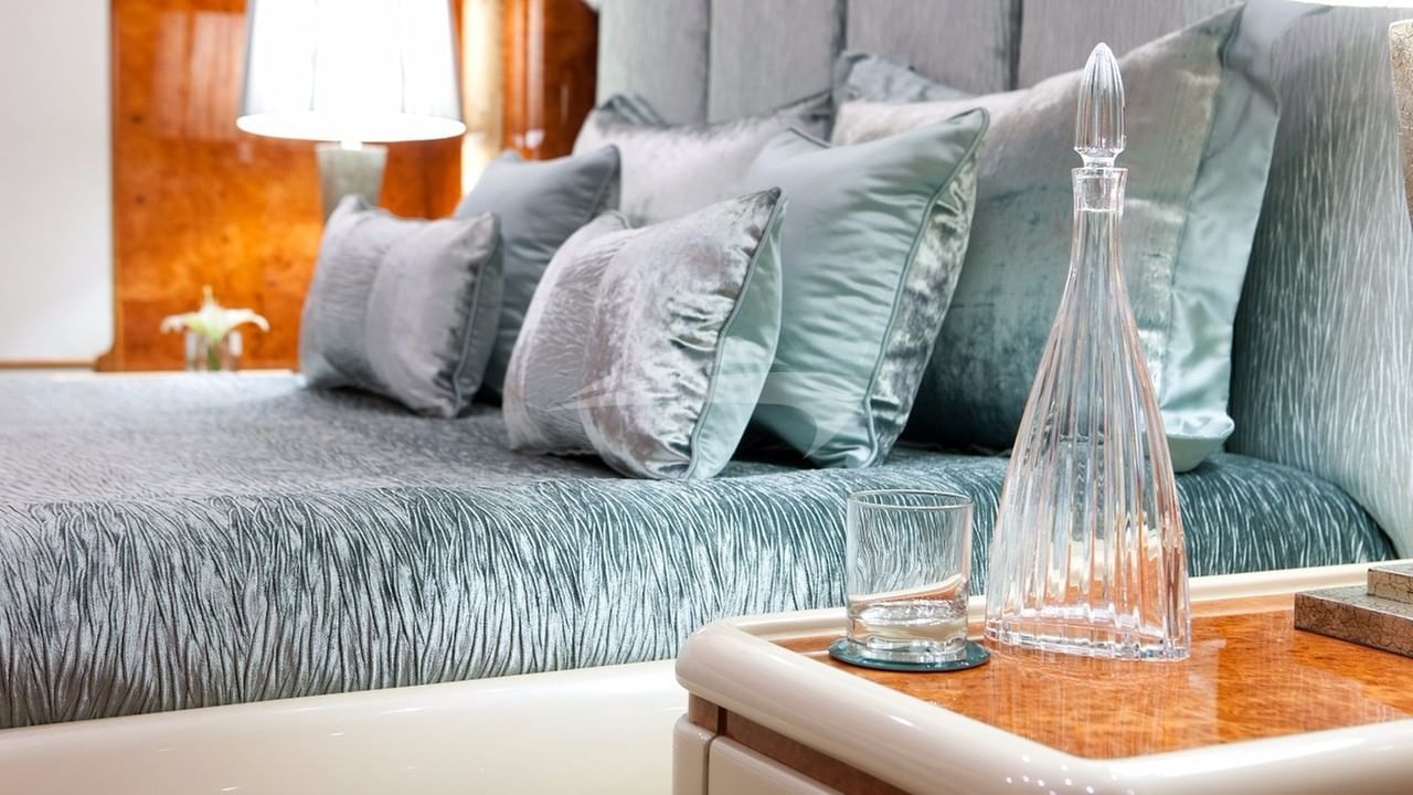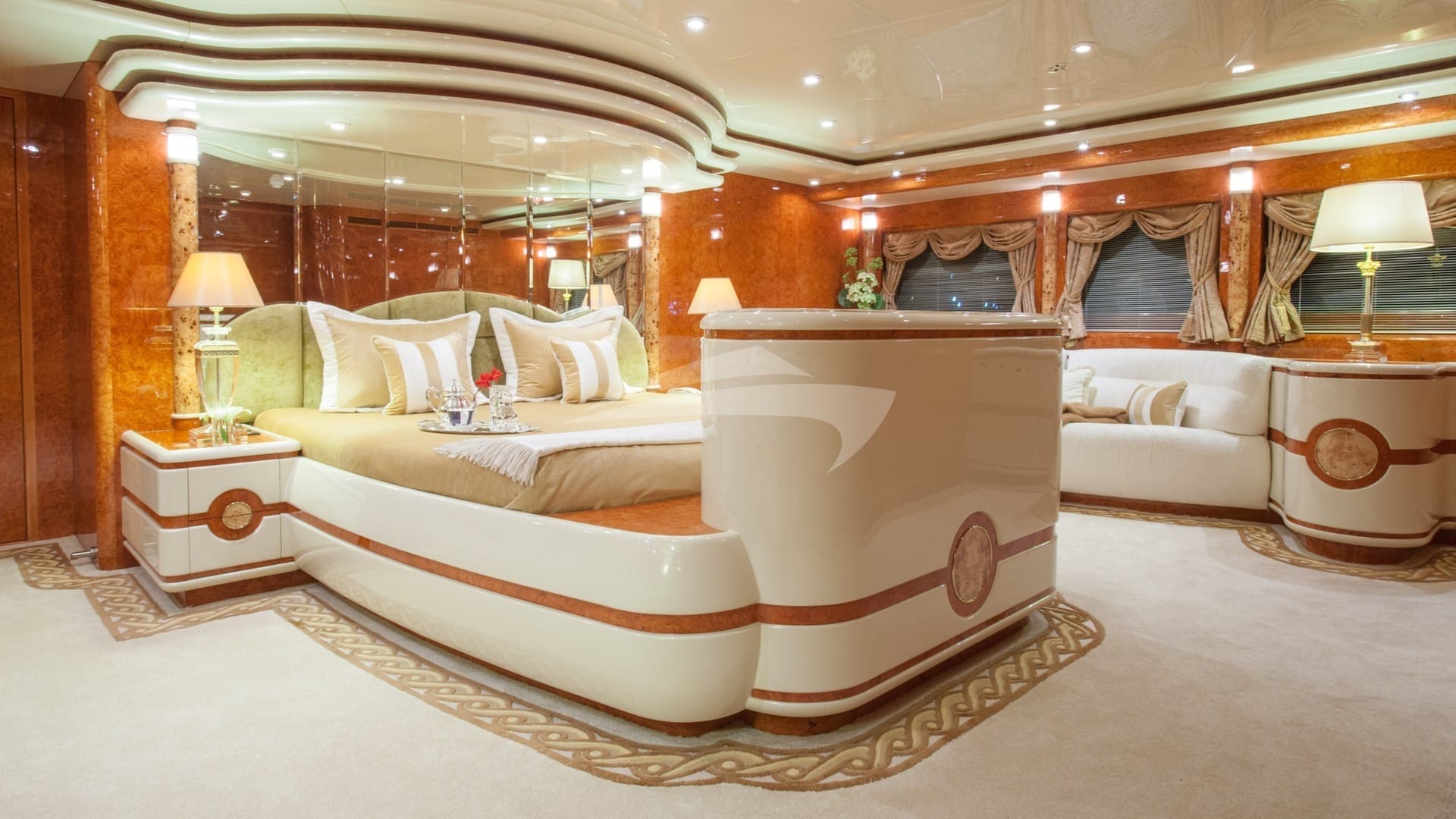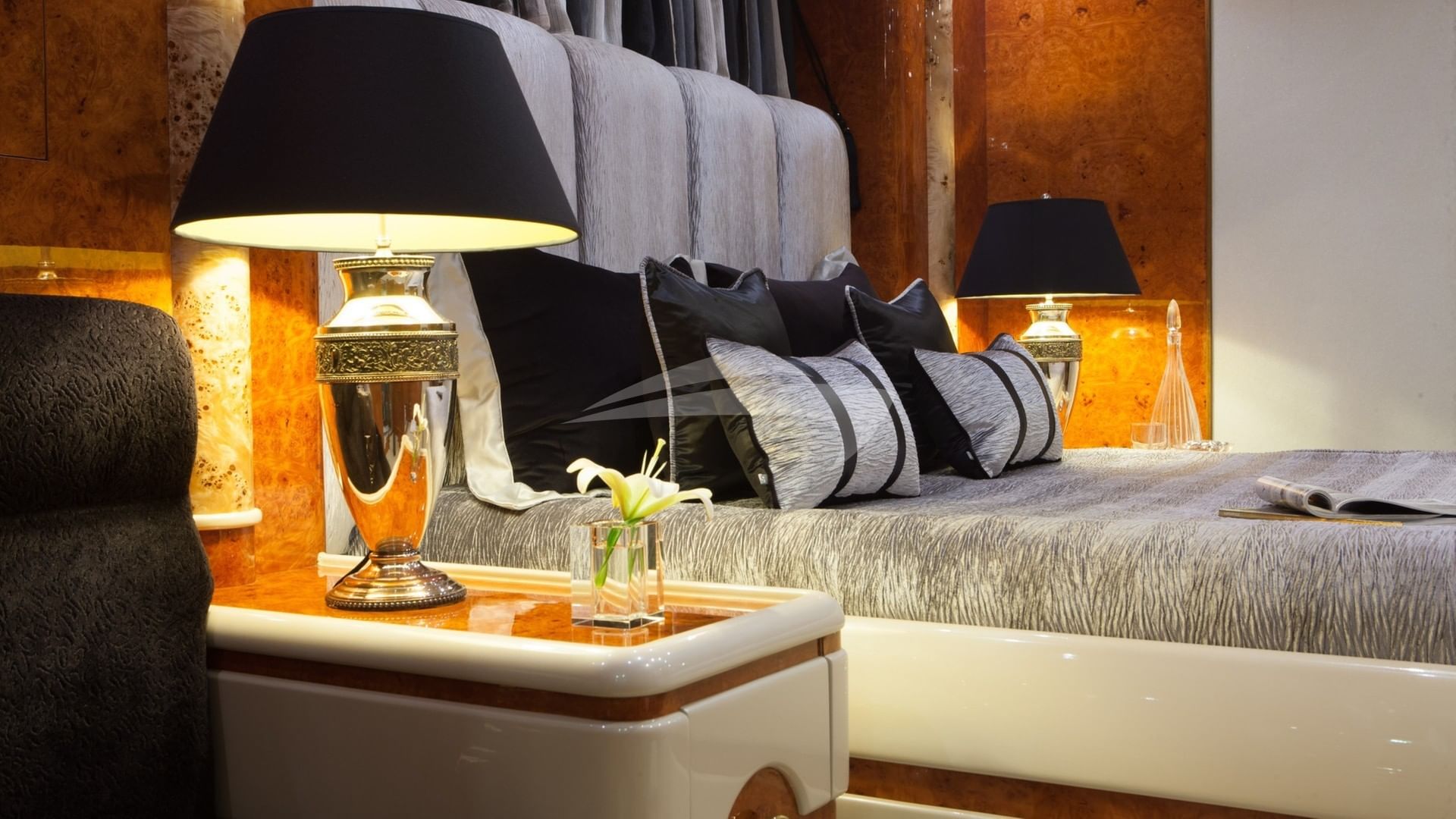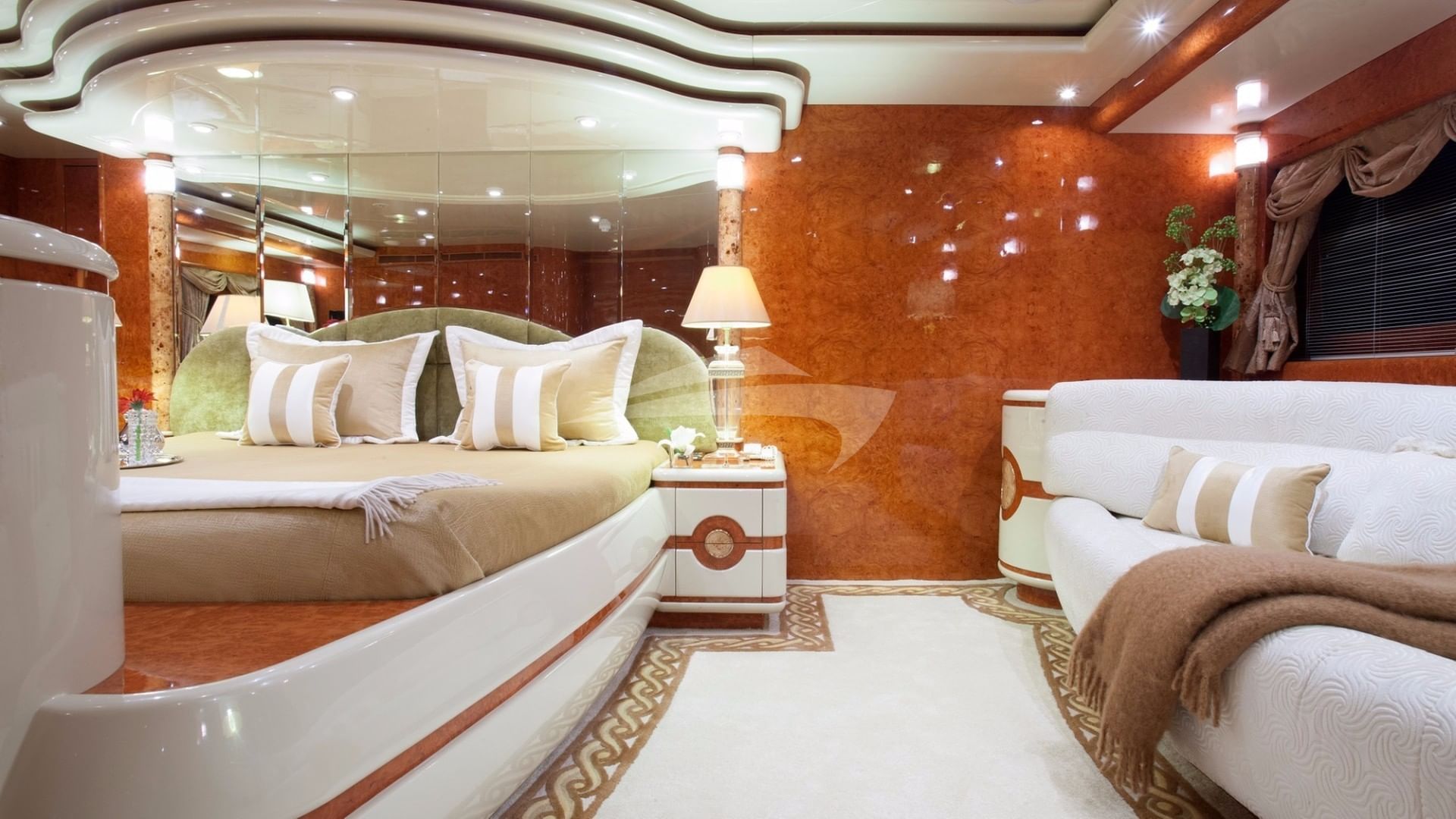 WHEELS Posso ospitare 10 persone in 5 cabine composte da una suite principale con letto king size e bagno privato a prua, 3 cabine con letto queen size e bagno privato e una cabina con 2 letti singoli e bagno privato.